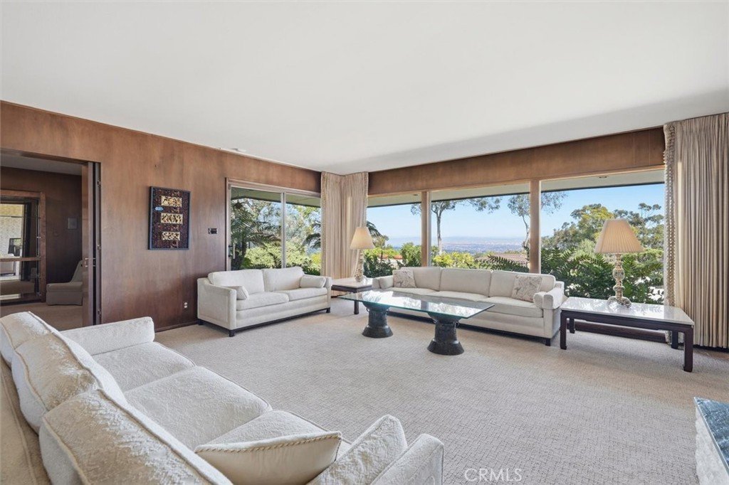 This extraordinary classic mid-century home, situated at the crest of 4.3 acres, is one of the truly great estate properties in Rolling Hills. Sweeping vistas framed by beautiful trees provide both spectacular views and a sense of privacy while radiating the spirit of effortless indoor-outdoor California luxury living.The property evokes the glamour of a bygone era the moment you arrive. Walls of glass frame breathtaking views and open seamlessly to expansive patios, creating a spectacular flow between interior spaces and the outdoors. The residence was designed with entertaining in mind. Generous living spaces spill out to beautiful terraces and a resort-style pool area, offering an unforgettable setting for gatherings both intimate and grand. For years, this property and its generous owners hosted magnificent fundraising events for local charities, welcoming hundreds of guests with elegance and ease. The estate grounds are equally impressive. The 4.3 acres of largely usable land include a separate two-bedroom guest house, a large two-story barn, ample space for equestrian pursuits or the creation of additional outdoor amenities, and a charming children’s cottage. Look carefully, and you will find a 1950’s bomb shelter that could serve as a unique wine cellar. With its rare combination of architectural significance, breathtaking views, usable acreage, equestrian facilities, and legendary entertaining spaces, 100 Saddleback stands as one of the landmark estates in Rolling Hills—a property that embodies the timeless glamour and lifestyle for which the Palos Verdes Peninsula is known.