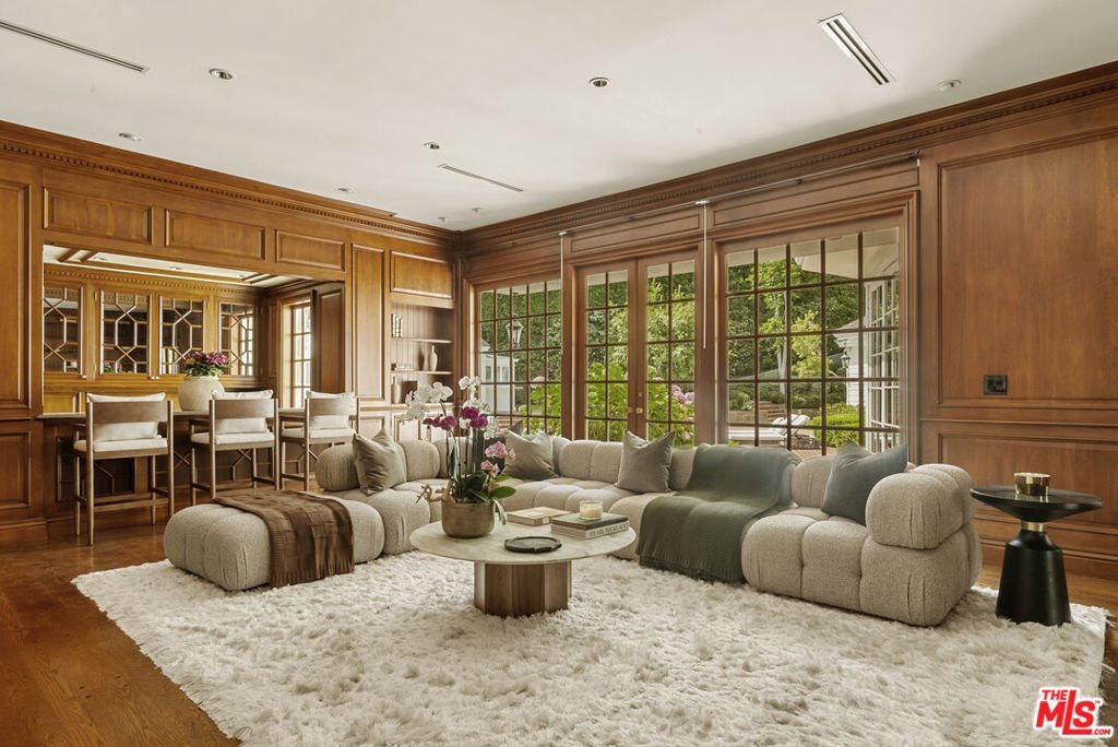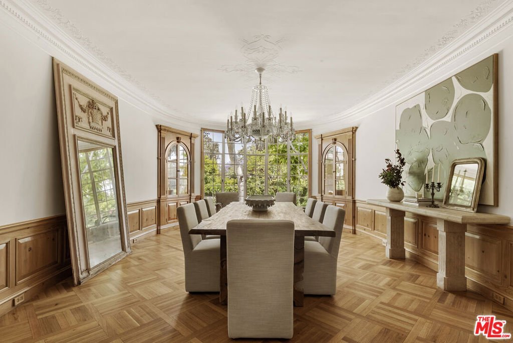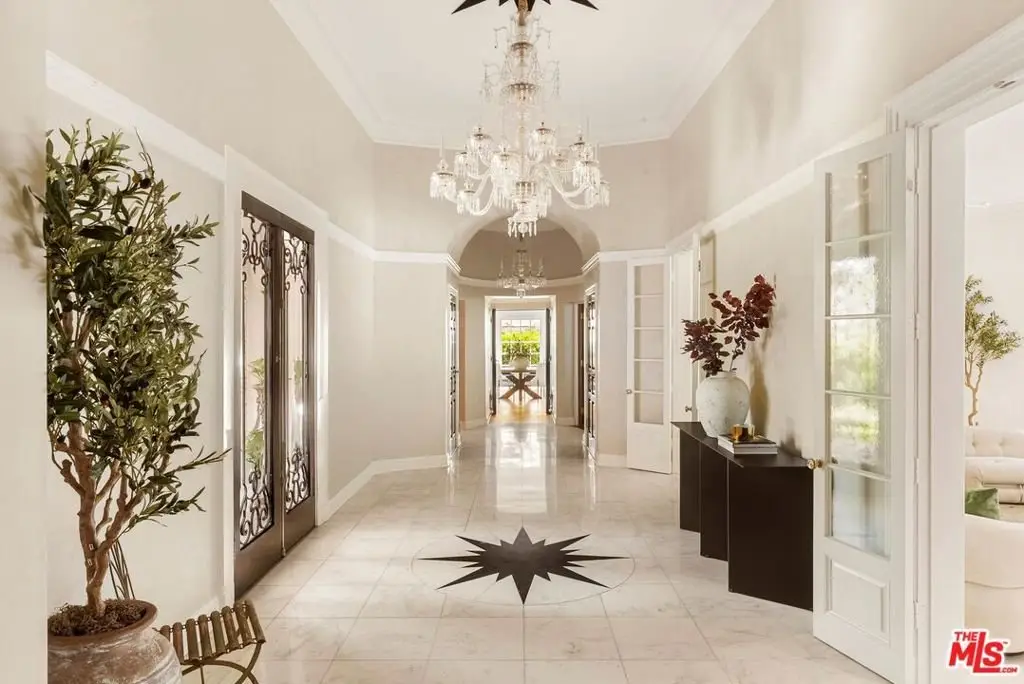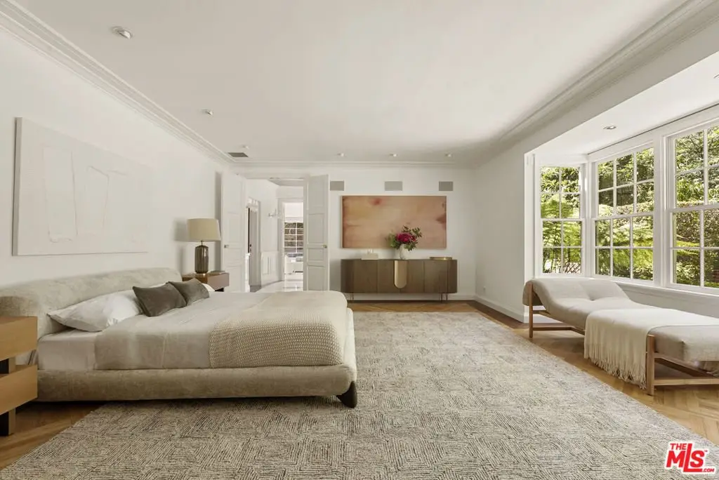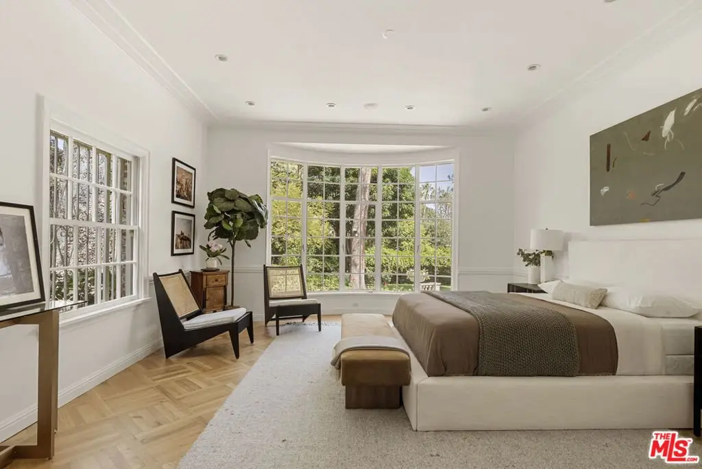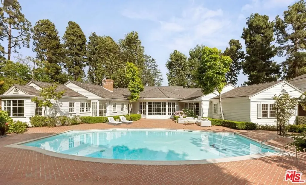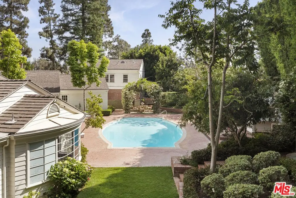 Set behind double gates in one of the most coveted pockets of Beverly Hills - North of Sunset, just behind the iconic Beverly Hills Hotel - this extraordinary estate offers both pedigree and privacy on a rare, nearly one-acre parcel. Designed by Paul R. Williams for Mrs. John Landis, the Colonial Revival home reflects his signature elegance, blending classic proportions with a warm, livable layout that opens effortlessly to the gardens. Flooded with natural light, the interiors feel open and airy, with French doors and expansive windows framing views of brick walkways, a lozenge-shaped pool, and an elegant cabana complete with bath, kitchen, and built-in BBQ. A grand marble entry hints at the refined detailing throughout. Lush gardens, mature trees, and a picturesque gazebo create a series of intimate moments across the estate, offering a sense of escape that feels worlds away. From the wood-paneled dining room with curved bay windows to the inviting breakfast room, every space reflects timeless craftsmanship. In addition to the main residence, the property includes a charming separate guest suite along with two staff rooms - ideal for visitors, a private office, or support staff. A true estate in every sense - majestic yet inviting, private yet perfectly situated - tucked away just moments from the finest restaurants, shops, and cultural landmarks of Beverly Hills, yet offering the serenity of a world apart.