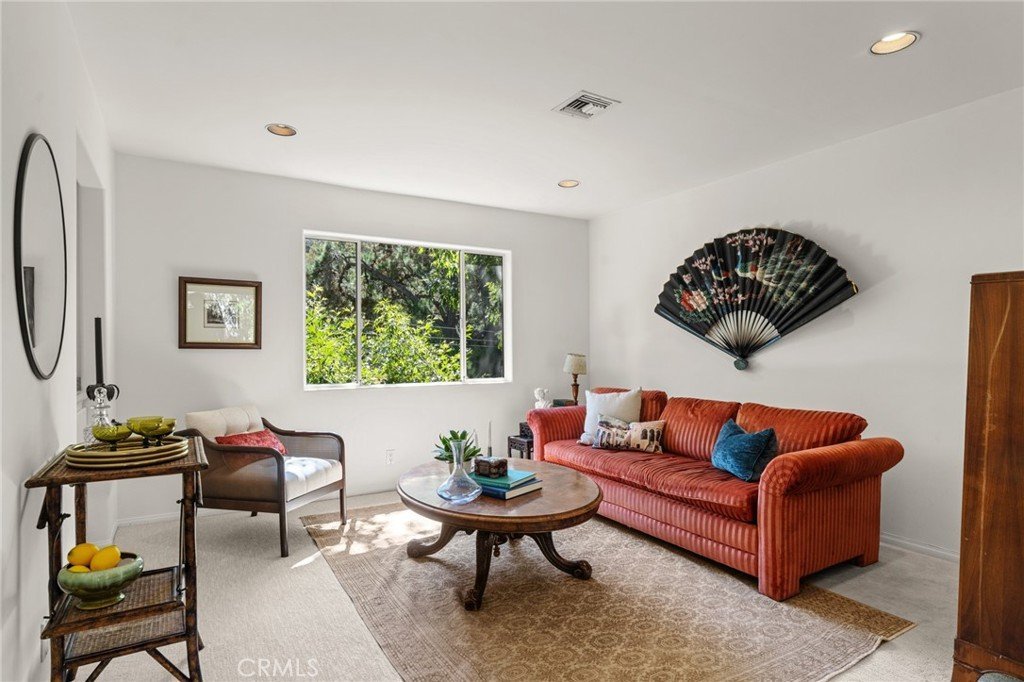 The main level is built for easy entertaining: an open living and dining great room with expansive west-facing windows framing lush hillside views, wood-burning fireplace, and a chef’s kitchen that keeps everyone connected while you host. Also on this floor, a generous second bedroom, bath and private courtyard - an intimate outdoor nook ideal for morning coffee or yoga.