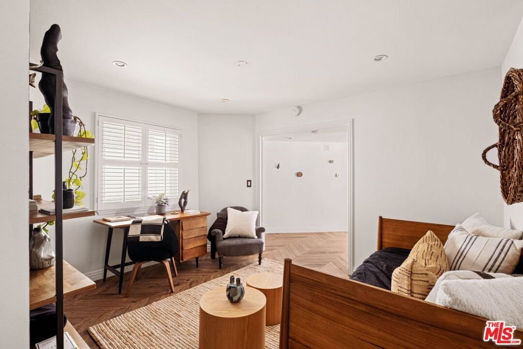 This is home. It's warm and thoughtfully designed, pulling you in. This 3 bd 2.5 ba home is all you really need. The open living room with chevron floors faces a beautiful two-sided tiled fireplace and leads out to an expansive terrace that wraps around the unit. There's room for al fresco dining, an outdoor kitchen, and an entire conversation pit. The kitchen features stainless steel appliances and stainless backsplash, hand-selected hardware, double ovens, Caesarstone countertops, and ample storage space. The primary suite includes a cozy fireplace, a generous walk-in closet, and an en-suite bathroom with a clawfoot soaking tub and separate rain shower. The two additional bedrooms have both been designed with meticulous detail, currently being used as an office and a guest bedroom. Additional amenities include Fireclay tile throughout the unit, in-unit laundry, 2 side-by-side parking spaces with a private covered garage, and a private storage unit. This truly Mid-Century home is centered in the heart of Santa Monica's most walkable neighborhood and provides easy access to both the bluffs and Montana Avenue's boutiques and cafes. This special home has been hand-designed over time with acute attention to detail, creating a space that is both highly curated and warm and inviting. This home is walks to the beach at the end of the day and mornings by the fireplace. It's where you'd want to write your novel or read someone else's. There's room for all of your beautiful things. This is where you'll want to be for a long long time.
