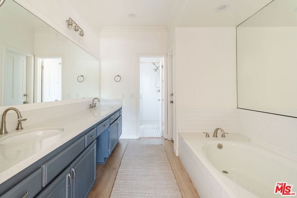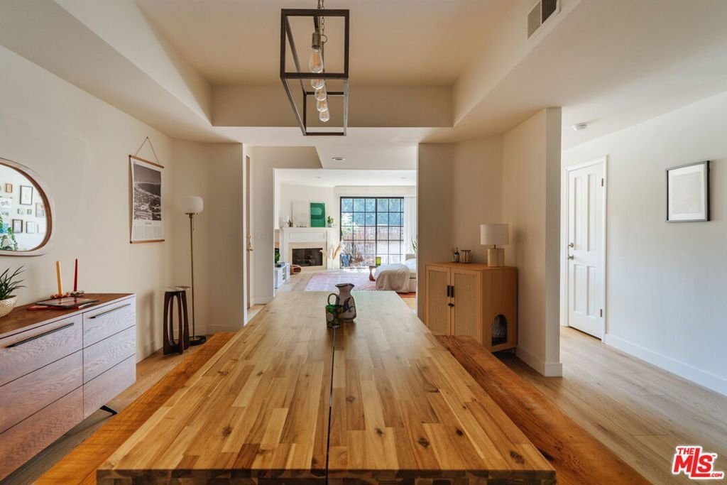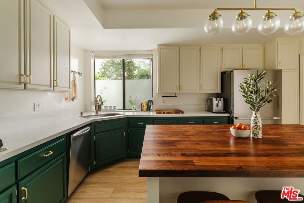 Spacious single story condo tucked away in a tree lined neighborhood just blocks from Rancho Park, Fox Studios, and Century City. Set back from the street in a boutique 12 unit building, enter into the turn key home to find a large living room with fireplace, framed formal dining area, and south facing balcony through an oversized sliding glass door. Adjacent is a large kitchen with two toned cabinets, quartz countertops, upgraded hardware and appliances, and a butcher block island with bar seating. The primary bedroom suite features a long double vanity, soaking tub, fully built out walk-in closet, and tiled shower with a sliding glass enclosure. An additional guest bedroom and bathroom complete the home, which also includes in-unit washer and dryer, two parking spaces, and large additional storage locker outside the unit. The well maintained building has a community gym area, community sauna, and guest parking. Situated in the Westwood Charter school district, and an excellent central location just a short drive to Beverly Hills, Westwood, UCLA, and the Westfield mall.