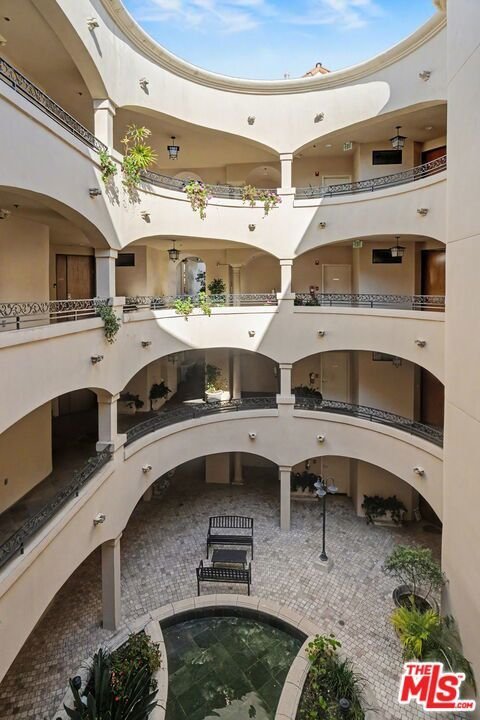 Spectacular 2 bed/2 bath + family room and stunning large covered balcony corner unit in highly desired upscale Mediterranean courtyard complex in prime Century City Adjacent location. Elegant rounded wall formal entry opens to the spacious floor plan with large living room and dining room that includes a beautiful wall of wood framed floor to ceiling windows and French doors leading to large enclosed tiled patio with arches overlooking Century City views, ideally designed for outdoor relaxing and dining as an outdoor extension of the condo. Light and bright family room with fireplace opens to entertainer's kitchen with large breakfast bar with granite countertops, stainless steel appliances with newer range/oven, microwave and dishwasher and pantry cabinet. Beautiful primary suite with French door to covered patio, walk-in custom-built primary closet and luxurious primary bathroom with separate bath and shower and 2 sinks with sconce lighting and large window bringing in natural light. 2nd bedroom with window overlooking outside balcony. Updated 3/4 bath with newer designer marble bowl sink and tiled shower. Inside laundry area, recessed lighting, pets ok, rooftop patio area, 2 car head-in parking spaces, guest parking, elegant courtyard with fountain. Ideally located close to Rancho Park Golf, Park and Recreation Center, Westfield Century City Mall, Beverly Hills and ULCA. Westwood Charter School.