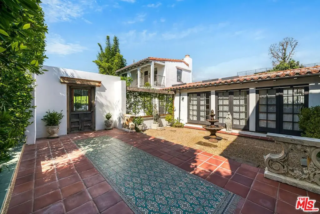 Chautauqua-on-the-rim. Unique and special Spanish style home. Once through the gates and in the courtyard entry you are immediately transported emotionally to a different place... Mexico, Spain or Tulum perhaps. Warm and welcoming, gorgeous, restored and remodeled. Cathedral beamed ceilings and French doors set the stage for that perfect indoor/outdoor flow from the front courtyard to the back patios. Romantic primary suite with an office, dressing area and the ideal upstairs patio with views across Rivas Canyon to the ocean. 2 beds down with a beautiful wood paneled family room. Newly remodeled chefs kitchen, fabulous flow for entertaining, very flexible floor plan.. Light, bright walls for artwork, all of the windows look out on incredible vistas. Private, special, all of this and a guest house. This house is resilient and withstood everything nature confronted it with and is a testament to the strength and the longevity of a true Spanish home built in 1930.