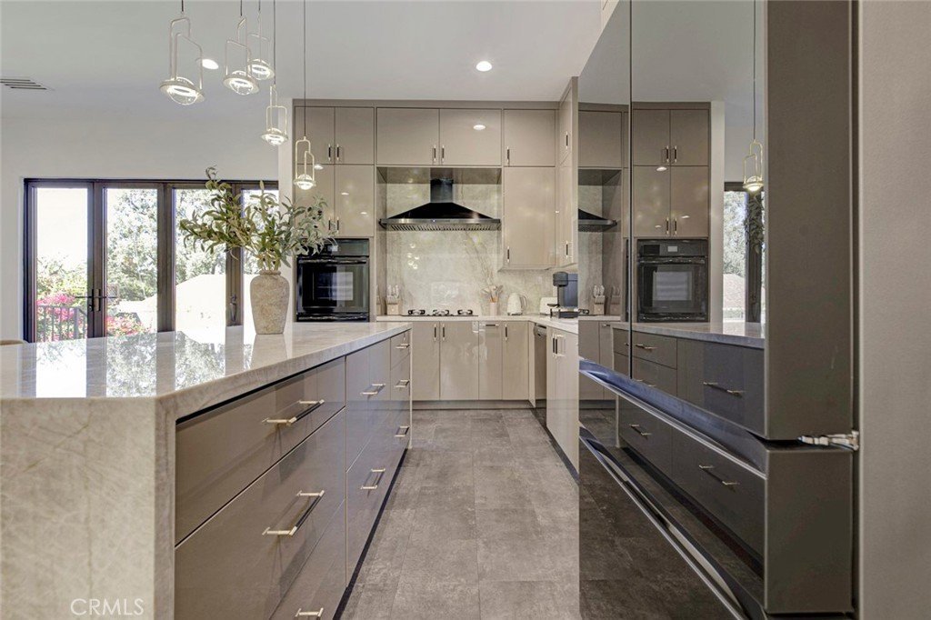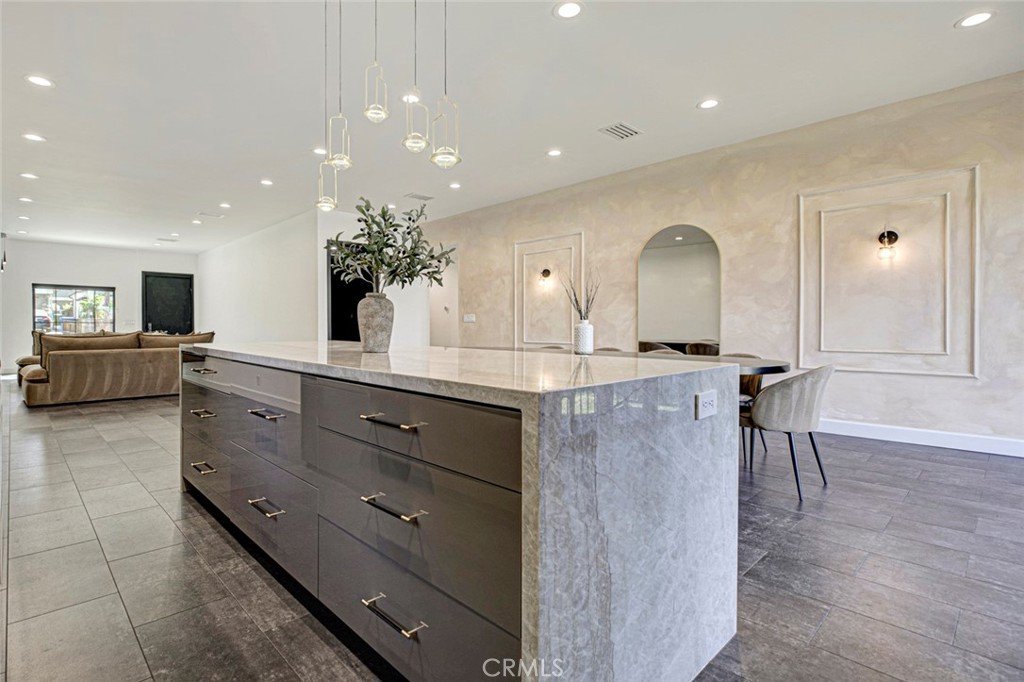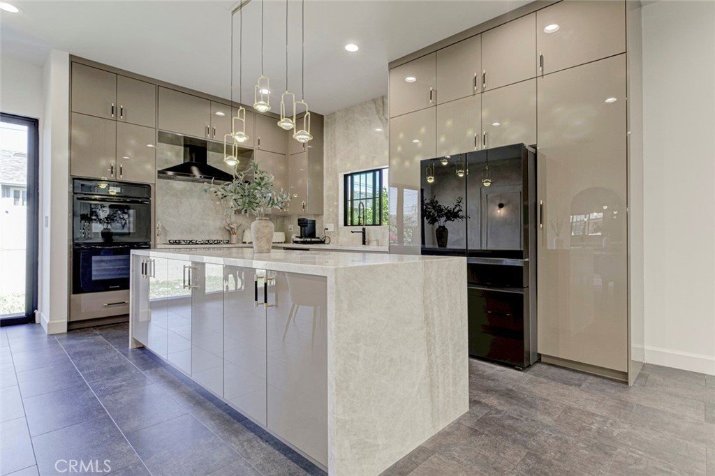 The gourmet kitchen is a true showstopper, highlighted by elegant Taj Mahal stone countertops, high-end finishes, and seamless flow into the living and dining areas. Enjoy indoor-outdoor living with stylish folding doors that open to a yard.