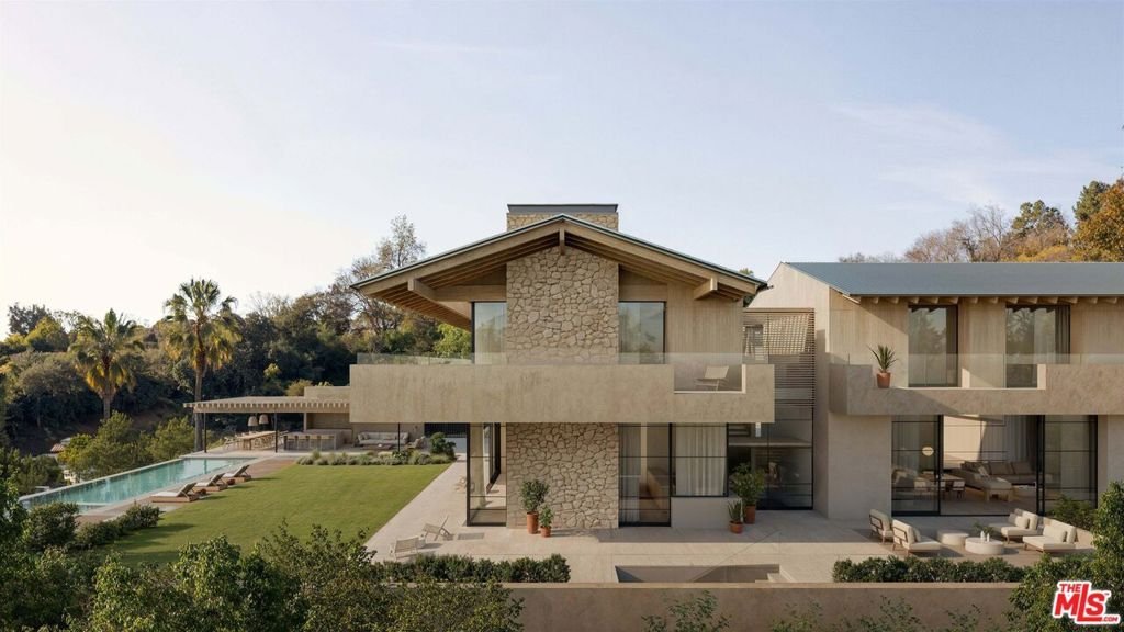 Sited on a promontory within the coveted West Gate of prestigious Lower Bel Air, this exceptional property presents a rare opportunity to create a world-class architectural estate. Fully approved RTI plans by acclaimed firm Studio Plasencia envision an approximately 15,000 square foot residence designed to capture sweeping views over the Bel Air Country Club, with partial views of the City and the Pacific Ocean. Thoughtfully conceived for the most discerning buyer, the proposed residence offers a generous primary suite, eight total bedroom suites, and a family-friendly floor plan that seamlessly blends grand scale with everyday livability. Resort-caliber amenities include a grassy lawn, pickleball court, wellness center, gym, two private offices, and a media room. The upper level is designed to capture breathtaking vistas stretching all the way to Palos Verdes. An existing single-story bungalow currently sits on the property, offering immediate flexibility for a buyer. The existing home offers the opportunity to be thoughtfully remodeled and reimagined into a charming Bel Air bungalow, creating a warm and elegant residence that blends timeless character with modern comfort while taking full advantage of the property's exceptional promontory setting and surrounding views of the Bel Air Country Club Golf Course.