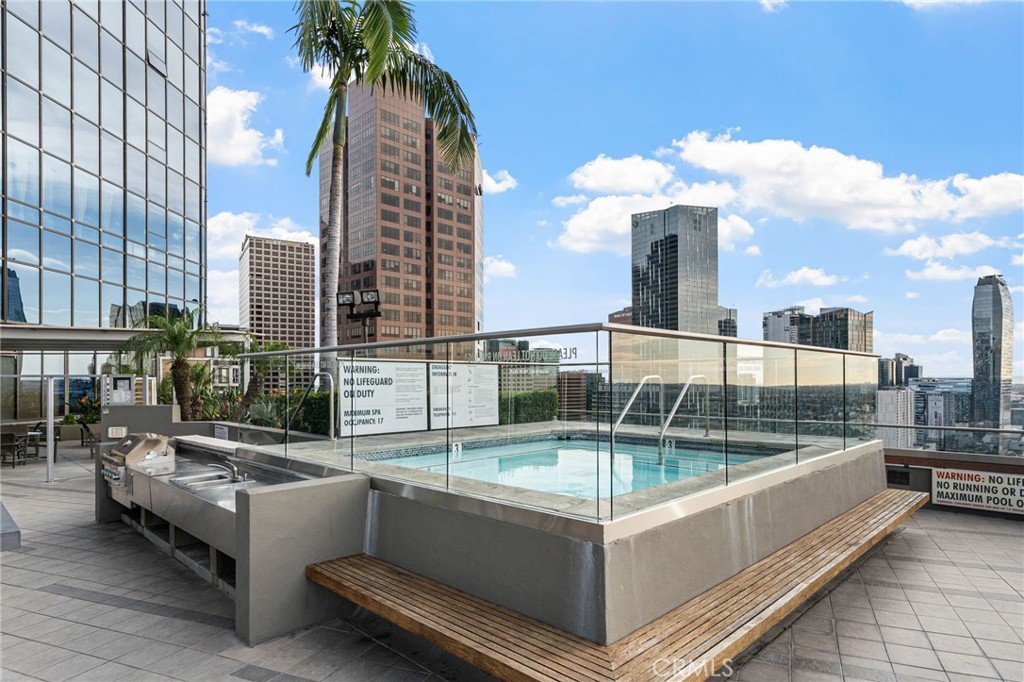 1100 Wilshire provides an exceptional living experience with 24-hour security and concierge services, a fitness center, media room, and conference room. On the 17th floor, the Sky Deck boasts a heated infinity pool, spa, cabanas, lounge chairs, fire pit, and BBQ grill. This prime location offers easy access to Crypto.com Arena, LA Live, Regal Theaters, The Bloc, Ralph's, Starbucks, Target, Whole Foods, MOCA, Walt Disney Concert Hall, and a variety of Downtown dining and entertainment options. There are two (2) common-area potty areas for dogs. Amazon lockers on the 1st floor, and a self-checkout mini mart. Please note that the loft’s bedroom is not enclosed.