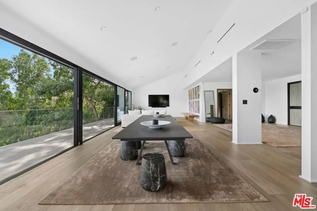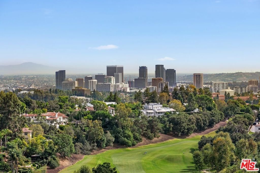 Located in one of Bel Air's most picturesque vantage points, high above the Bel Air Country Club golf course, this four-bedroom, four-bathroom, three-level residence is defined by elevated finishes, sweeping views, and an abundance of natural light. The main level unfolds in a spacious open-concept design, where the living, dining, and kitchen spaces flow effortlessly together, all positioned to capture unobstructed views of the Bel Air hills, the Los Angeles skyline, and the impeccably maintained fairways below.At the center of the home, the kitchen makes a bold statement with a dramatic waterfall-edge island, refined modern finishes, premium appliances, and an exceptionally large walk-in pantry, creating an ideal environment for both everyday living and effortless entertaining. The second level is anchored by the primary suite, featuring a generous walk-in closet and a spa-like bath with a freestanding soaking tub, dual showers, and a picture-window framing panoramic views. An adjacent outdoor terrace extends the suite, offering a peaceful retreat immersed in the surrounding landscape. Three additional bedrooms, each with its own en-suite bath, provide comfort and privacy for family or guests. The lower level introduces a temperature-controlled wine cellar, a private sauna, and a flexible fourth bedroom currently configured as a recreation and game room. Expansive wraparound glass balconies throughout the home blur the line between indoors and out, enhancing the connection to the dramatic natural setting and completing this exceptional Bel Air offering.