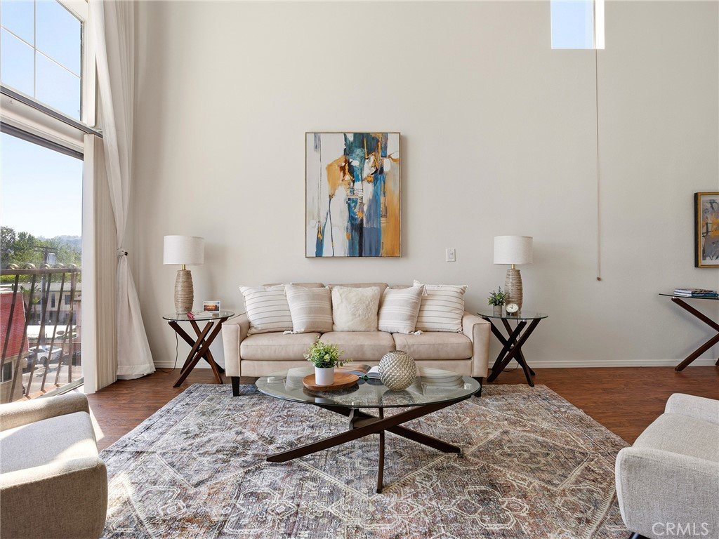 Absolutely stunning and spacious 2 bedroom plus loft townhouse offering 1,396 square feet of light-filled living in a prime Studio City location. This top-floor corner penthouse delivers an extraordinary layout with soaring two-story ceilings, dramatic vertical skylights, and an abundance of natural light throughout. Step inside through a formal entryway into an impressive two-story living room featuring a cozy fireplace and beautiful Pergo flooring. The adjacent formal dining room also boasts two-story ceilings, creating a grand and open entertaining space. The kitchen is equipped with stainless steel appliances, marble flooring, and a convenient breakfast bar. The first floor features two generously sized bedrooms and two bathrooms, thoughtfully separated by an in-unit laundry area for added privacy and functionality. Upstairs, a versatile loft overlooks the main living space and can easily serve as a home office or potential third bedroom. From here, step out onto your private rooftop sun-deck, an incredible space to relax or entertain while enjoying views of the surrounding hills and trees. Additional highlights include vaulted ceilings, dual-pane windows, Berber carpet, central heat and air, two balconies, and 2 parking spaces with storage, plus ample guest parking. The community offers resort-style amenities including a pool, spa, sauna, recreation room, fitness center, patio, BBQ area, and clubhouse, all within a well-maintained setting. Ideally located just minutes from major studios including NBC/Universal, Warner Bros., Disney/ABC, CBS, and Sony, as well as close proximity to Metro Rail, the 101, 134, and 170 freeways, Ventura Boulevard’s shopping and dining, and nearby parks. While the home may benefit from light updates, the layout, volume, and location make this a truly exceptional opportunity. Come experience this unique and rarely available property, an incredible place to call home!