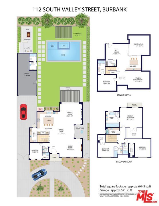 Every great neighborhood has that one special street. The one people talk about. The one people wait for. Welcome to 112 South Valley, a newly constructed, modern masterpiece that redefines luxury living. Perfectly positioned on one of Burbank's most coveted cul-de-sacs, this home offers the best of both worlds: the peace of mind that comes with Burbank's exceptional city services, outstanding public safety, and top-rated schools, paired with the prestige, warmth, and community charm of Toluca Lake. The designer thoughtfully curated every detail of this 6,043-square-foot residence to showcase architectural brilliance and deliver the soul-stirring promise of a life well lived. From the moment you arrive, the dramatic, solid white oak pivot front door opens to a world of refined elegance. Soaring ceilings and walls of Marvin windows flood the space with natural light, while rich textures, such as Marmorino Italian plaster and Portolan limewash, create an ambiance of sophistication. Whether you're gathering in the expansive living room, relaxing in the family room, or entertaining in the chef's kitchen adorned with custom Shinnoki walnut cabinetry, oversized double faucet sink, Thermador appliances, and a sleek butler's pantry, this home is an experience of flow, function, and flawless beauty. Five en-suite bedrooms, each a private retreat, offer comfort and serenity. The primary suite, situated above the expansive landscaped grounds, features a spa-inspired bath, a custom walnut walk-in closet, and a balcony where you can greet the day with sunshine and the soothing sounds of the morning air. Downstairs, a state-of-the-art theater, rec room, bonus space, and a sleek bar come together to create the ultimate setting for fun and entertainment, whether you're hosting game night, enjoying a movie with family, or simply unwinding with friends in style. Step outside and be transported. The backyard is a sanctuary of its own, featuring a black-bottom saltwater Pebble Tek pool with a Baja shelf and spa, two innovative motorized patio systems, an Ipe wood fire pit bench, and a complete outdoor bath/mudroom. Entertain effortlessly or unwind in total privacy beneath the stars. The home offers the latest in technology and convenience, featuring Control4 smart home automation, a quad-zone Carrier climate control system, an integrated sound system, custom lighting, and sleek Samsung washer/dryers. Additional amenities include fully underground electrical, solar panels for enhanced energy efficiency, and an electric car charger in the spacious garage. Every element from fluted limestone accents to custom linear drain installations reflects the highest standards of design and craftsmanship. However, the true luxury of 112 South Valley lies in the lifestyle it offers. Here, neighbors greet each other by name. Stroll into Toluca Village for your morning coffee, dine al fresco at your favorite local spot, or attend a community event where everyone feels like family. You're minutes from top-rated schools, major studios, the Lakeside Golf Club, and iconic LA landmarks like Griffith Park and the Hollywood Bowl. 112 South Valley is more than a home; it's your place in a vibrant, welcoming community with a rare opportunity to live in modern splendor, in a neighborhood where connection and character matter.