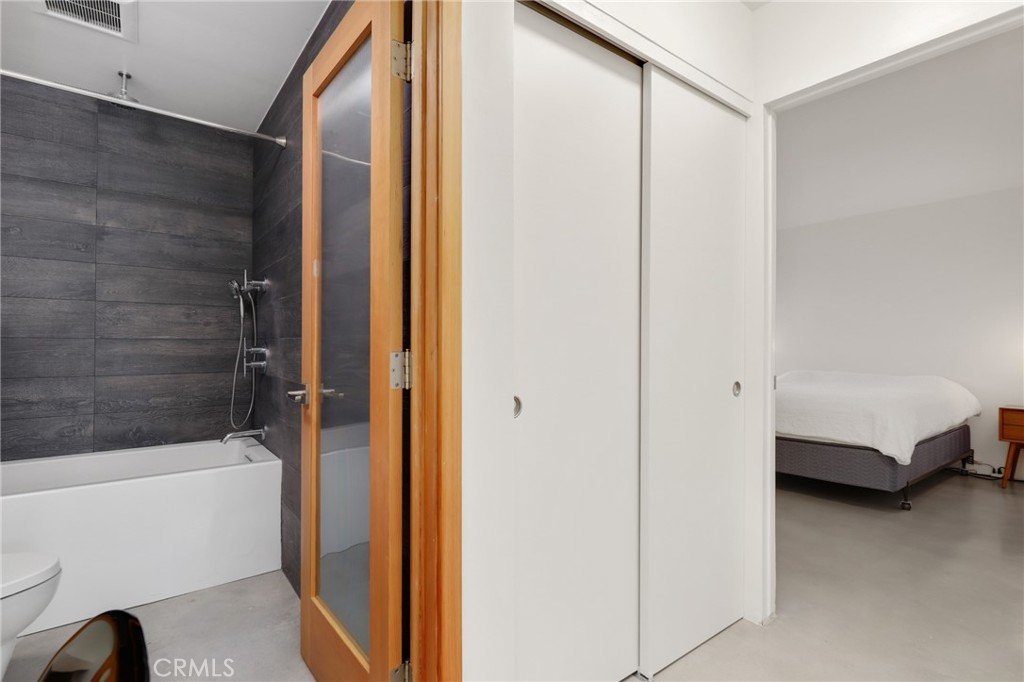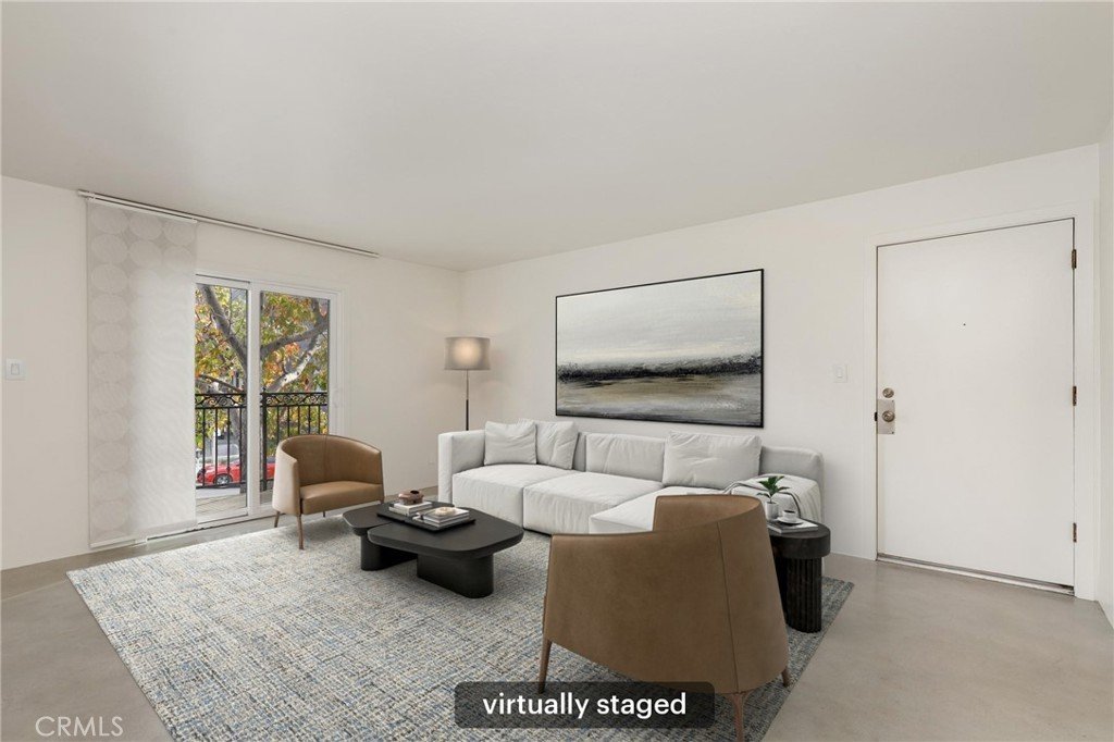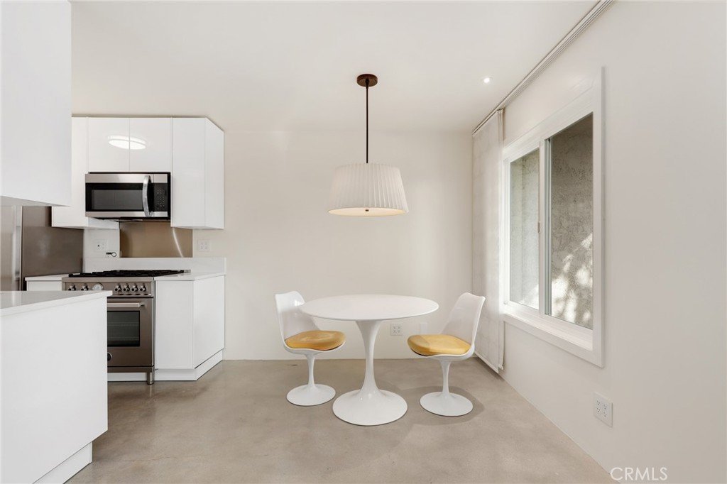 Welcome to this beautifully updated 1 bedroom 1 bath condo at 1125 Pico Blvd 109 offering modern comfort, thoughtful upgrades, and an ideal Santa Monica lifestyle. This residence has been completely remodeled with fully insulated walls for improved energy efficiency and sound reduction, newer vinyl windows, and a newer vinyl sliding glass door that fills the home with natural light and opens to the oversized balcony. Polished concrete floors deliver a clean, contemporary look that is both stylish and easy to maintain. The remodeled kitchen features modern cabinetry and stainless steel appliances including a Bertazzoni Professional series gas range, microwave hood combo, and refrigerator, and flows seamlessly into the dining area where the Saarinen table and iconic Tulip chairs are included in the sale, complemented by a Rejuvenation light fixture that beautifully anchors the space. The spacious living room opens directly to the balcony facing Pico Boulevard with a peek-a-boo ocean view through the palm trees, creating the perfect spot to enjoy morning coffee, evening drinks, or relaxed people watching. A short hallway leads to a flexible work-station that can be converted to a stackable in unit washer and dryer, recently approved by the HOA, and for those who choose not to install in unit laundry, the community laundry room is conveniently located immediately adjacent to the unit and is accessible without climbing any stairs. The luxurious full bathroom is appointed with Kohler fixtures and a deep 60 gallon soaking tub and shower combo highlighted by a ceiling mounted rain style shower head. Storage is abundant with a hallway closet and a walk-in closet in the bedroom, which is tucked privately at the end of the hall. The unit offers step free access with a gated ramped entrance from quaint 12th Street that leads directly to the condo without climbing a single stair. Additional features include one dedicated underground parking space and a private lockable storage area nearby. Located less than a mile from the beach and just a short stroll to restaurants, parks, schools, and shops, this home delivers the best of Santa Monica living while offering outstanding value in a highly desirable coastal community.