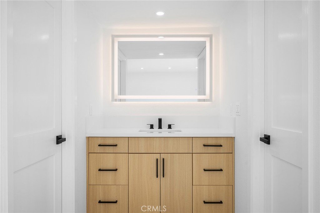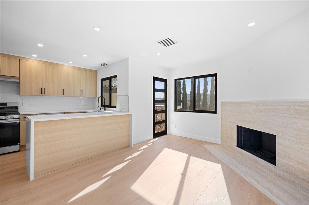 The European-style kitchen showcases sleek cabinetry and clean contemporary lines, creating a refined and functional space. Bathrooms have been tastefully remodeled with Italian porcelain tile, which is also elegantly wrapped around the fireplaces for a cohesive, designer finish. Additional upgrades include custom-built closets, updated bathroom fixtures, and a Nest smart thermostat for energy-efficient comfort.