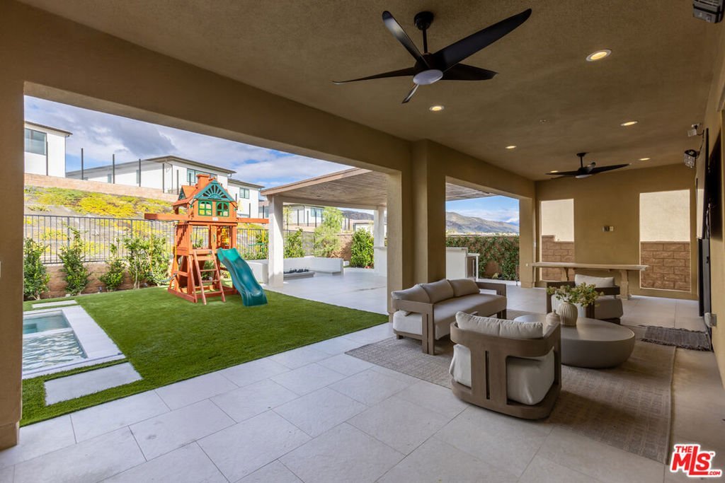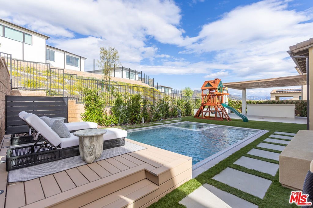 Welcome to 11734 Manchester Way, an exceptional luxury residence located in the prestigious, guard-gated Westcliffe community of Porter Ranch. Built in 2020, this grand traditional home is elevated with modern, neutral finishes and an unmistakable sense of scale from the moment you step inside. A dramatic double-height foyer introduces the home, anchored by a sweeping dual staircase setting the tone for the thoughtful craftsmanship throughout. The open main level offers seamless living and entertaining spaces, including an expansive great room, formal dining area, and a chef's kitchen designed to impress with rich custom cabinetry, premium appliances, and a large center island perfect for gathering. Upstairs, the luxurious primary suite is its own retreat, complete with a spa-inspired bathroom featuring a freestanding soaking tub, oversized marble shower, dual vanities, and abundant natural light. Each additional bedroom is generously sized with its own en-suite bathroom for ultimate comfort and privacy. One of the standout features of this home is the converted loft space, thoughtfully redesigned into a substantial office/flex room ideal for working from home, a creative studio, or a fully dedicated recreational area. Step outside to a resort-caliber backyard where the owners invested heavily in landscaping, hardscaping, lighting, and water features. The custom pool and outdoor environment create a true sanctuary, beautiful by day, and breathtaking at night. With 4 bedrooms, 5 bathrooms, 5,680 sq ft of living space, and a 9,000+ sq ft lot, this residence offers both elegance and functionality in one of Porter Ranch's most coveted enclaves.