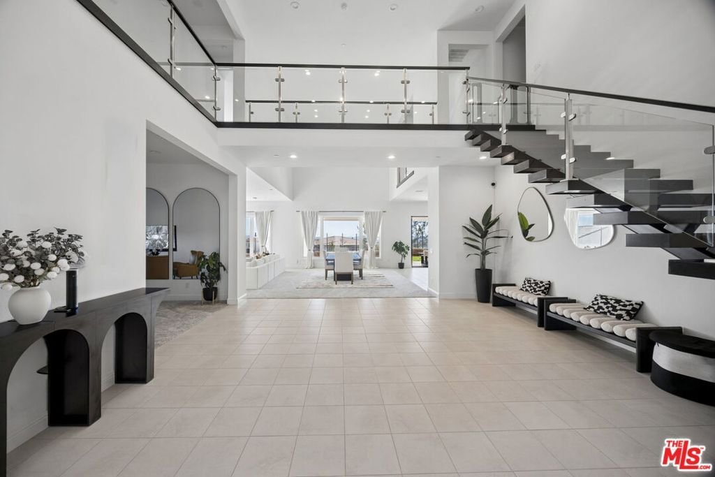 Situated on a premium corner lot within the prestigious guard-gated community of Westcliffe at Porter Ranch, this exceptional residence belongs to the coveted Skyline Collection Coast Plan. An elegant blend of contemporary design, privacy, and breathtaking scenery. Enjoy panoramic city and mountain views from a spacious, private backyard, creating a tranquil setting ideal for outdoor living and entertaining. This impressive home features 6 bedrooms and 6.5 bathrooms, thoughtfully designed for both luxury and functionality. A highly desirable first-floor bedroom suite provides comfort and flexibility for guests or multi-generational living. The main level also includes a spacious private office, bonus private space, dining room & a stylish powder room. Upstairs, five generously sized bedroom suites each offer walk-in closets and private en-suite baths, ensuring privacy and comfort for every member of the household. Primary bedroom offers a connected private seating room. The home's contemporary style is showcased from the moment you enter through the welcoming covered entry into a dramatic two-story foyer. The entry flows seamlessly into the expansive great room and formal dining area, both designed to maximize natural light and frame views of the luxury outdoor living space beyond.At the heart of the home is a chef-inspired gourmet kitchen featuring:A large center island with breakfast bar. Extensive counter and cabinet space An oversized walk-in pantry An open layout perfect for entertaining and everyday living. The stunning primary suite is a true retreat, highlighted by an enormous walk-in closet and a spa-inspired primary bath complete with dual vanities, a large soaking tub, a luxurious shower with built-in seating, and a private water close. Garage has electric car charging station. New, modern luxury, generous living spaces, and remarkable privacy, this residence presents a rare opportunity to enjoy elevated living in one of Porter Ranch's most sought-after communities. Great Tenant in place a great investment.