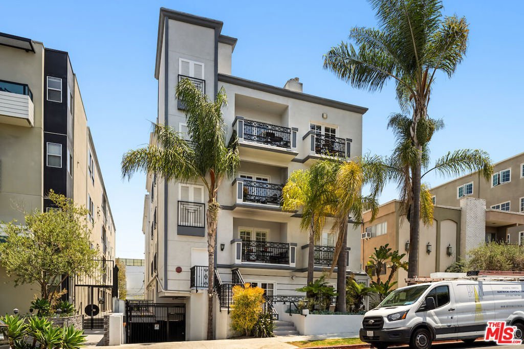 Sophisticated penthouse living awaits in this luminous corner residence, situated within an intimate 8-unit boutique complex built in 2003. Boasting windows on three sides and only one common wall, the home is bathed in natural light, featuring a gracious entry foyer that opens into an expansive living area detailed with elegant hardwood floors, crown moldings, and a charming fireplace. The flexible floor plan includes a dedicated alcove perfect for a home office or reading nook, while the integrated bar with a refrigerator and wine cooler makes entertaining effortless. Classic French doors lead to a private balcony with serene views, complemented by a formal dining area distinguished by elegant tray ceilings. The gourmet chef's kitchen is a masterclass in design, featuring extensive Italian cabinetry, granite countertops, and premium stainless steel appliances. A sprawling primary suite serves as a true sanctuary, complete with a private sitting area, an inviting fireplace, a large walk-in closet, and an additional full-sized closet for ample storage. The spa-like primary bath offers dual sinks and a separate soaking tub and shower. Modern essentials include side-by-side in-unit laundry, central HVAC, and two-car side-by-side secured parking plus three guest spots. Residents also enjoy an expansive community rooftop deck with breathtaking mountain views and glimpses of the Getty Center. Experience the best of Brentwood living with unparalleled proximity to the city's finest shops, dining, and UCLA.