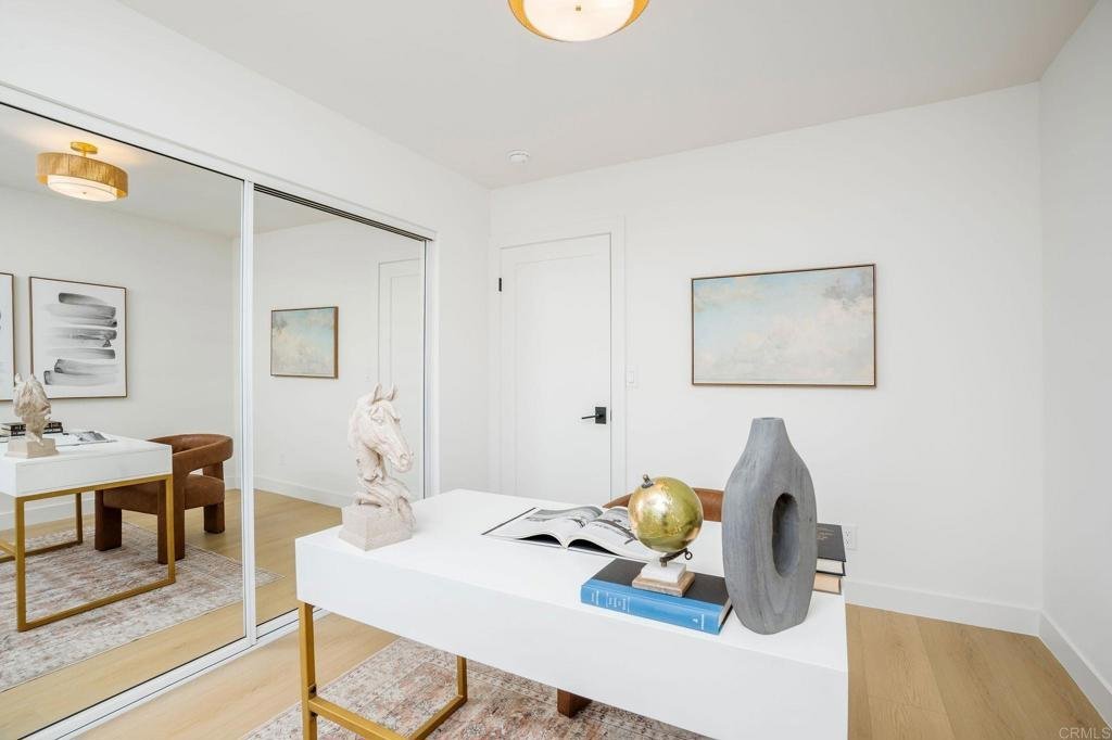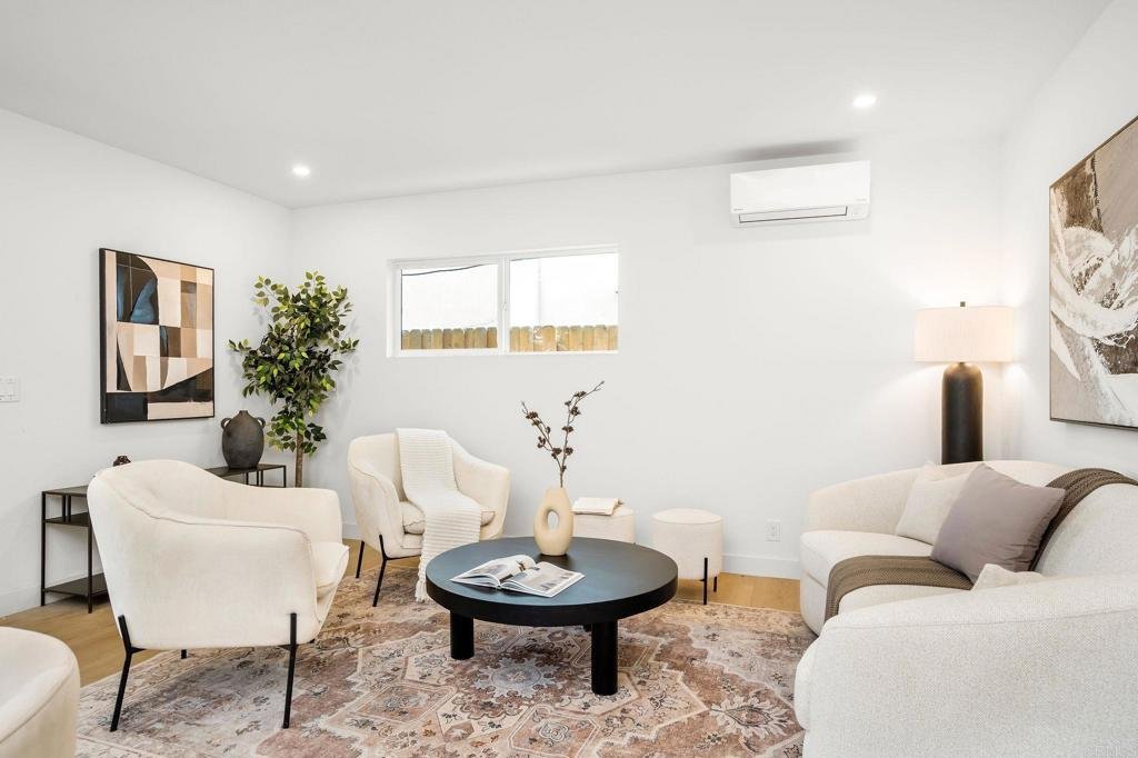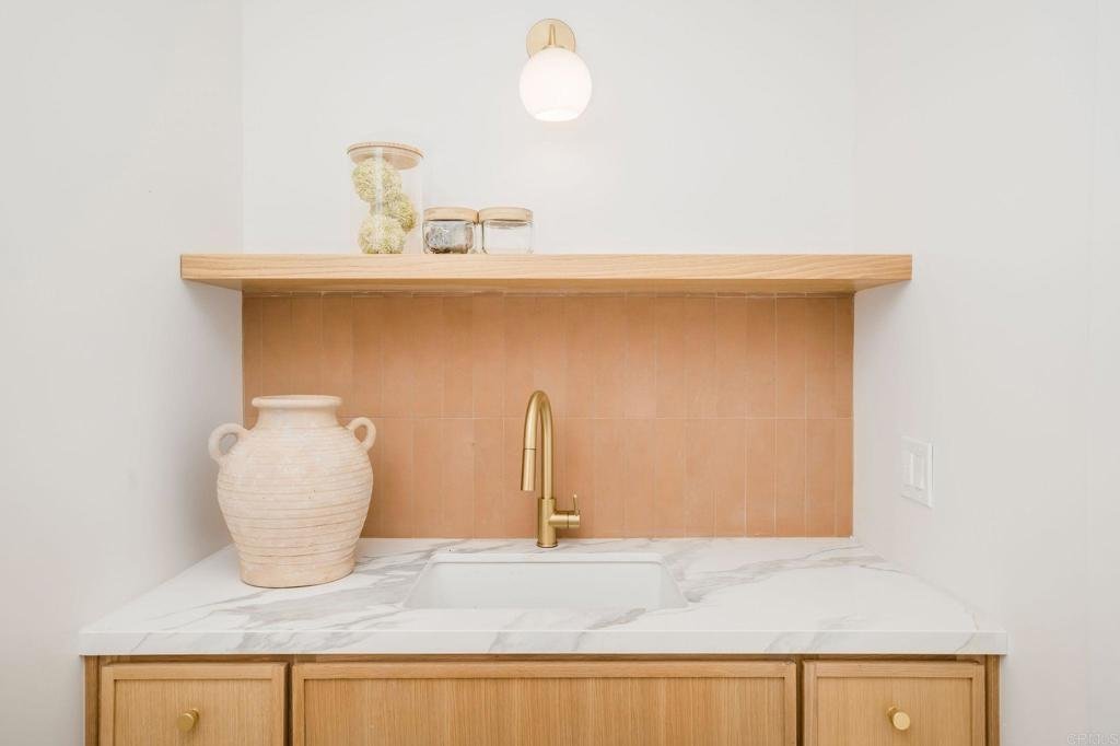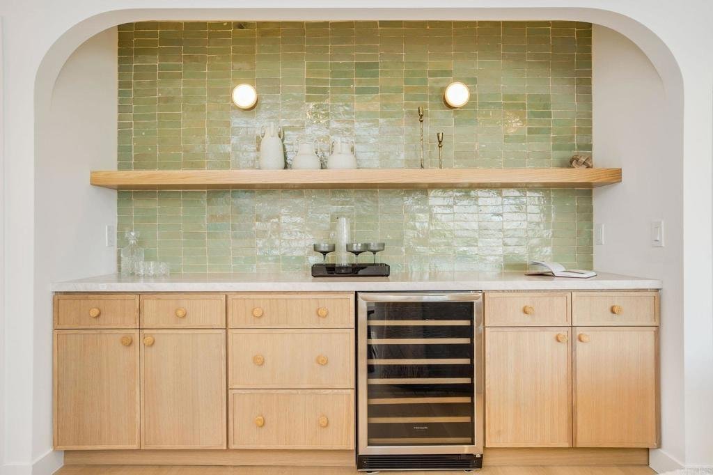 Masterfully remodeled from the inside out, this Culver City residence delivers designer-level finishes at every turn — from the main house to a fully self-contained ADU. A modern stucco exterior framed by new horizontal-slat metal fencing and a gated driveway sets a confident tone at the curb. Inside, wide-plank blonde hardwood floors carry through light-filled, open-concept living spaces anchored by a wood-mantled fireplace. An arched dry bar niche clad in sage zellige-style glossy tile — complete with a floating oak shelf, gold sconces, and wine fridge — adds a moment of drama off the main living area. The kitchen brings the design energy forward with two-tone slim shaker cabinetry in white and white oak, a quartz waterfall island with counter seating, a glossy zellige mosaic backsplash, and gold-tone hardware throughout. The primary suite is generous and serene, opening to the backyard via a slider. Its spa-caliber en suite features a floating white oak vanity with marble-look countertop, wall-mount gold faucets, patterned wallpaper, and a frameless glass shower with honed porcelain shower walls, pebble mosaic floor. Each additional bath carries its own design identity — from the bold terracotta checker tub surround to a third bath with a sculptural wavy-framed mirror and refined porcelain shower. A generous grassy yard with concrete patio and tropical plantings connects to the fully equipped ADU — white oak cabinetry, gas cooktop, porcelain shower tile with gold fixtures, and a cane-front vanity with arched mirror and gold sconces. Private alley entrance. All-new windows, doors, and HVAC throughout. Minutes from Downtown Culver City's dining and nightlife, Ivy Station, and the tech and creative campuses that define the city's modern identity, with easy freeway and Metro access.