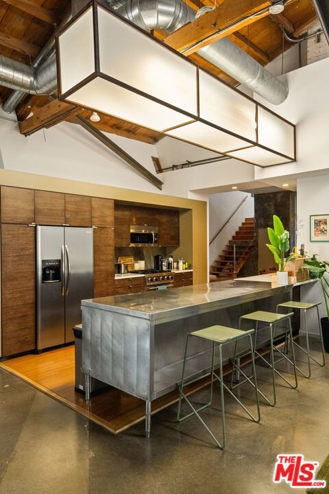 A rare opportunity to own a distinctive piece of Venice history, 120 Mildred is a 4,000-square-foot industrial architectural townhouse within the iconic Vanguard Lofts, originally part of the 1924 warehouse that housed the Venice Vanguard newspaper's printing press. Reimagined through a Danny Kaplan-designed renovation, the residence blends preserved warehouse character with modern live/work architecture, offering scale, volume, and exceptional flexibility in one of Venice's most unique compounds. Currently utilized as an office, the 3-bedroom, 3-bath layout includes an additional six private office spaces and approximately 2,500 square feet of ground-floor space with dramatic 17-foot ceilings. Designed to adapt to a wide range of uses, the property features large studio areas, mezzanine spaces, an open chef's kitchen, and seamless indoor-outdoor flow with private garden and deck spaces. Upstairs, flexible suites and expansive outdoor areas create endless possibilities for a creative office, live/work residence, or both. Exceptionally rare on its own, 120 Mildred also offers the unique opportunity to be combined with the adjacent 3,000-square-foot residence at 122 Mildred, creating a 7,000+ square-foot architectural compound just moments from the beach, Windward Circle, and Abbott Kinney.