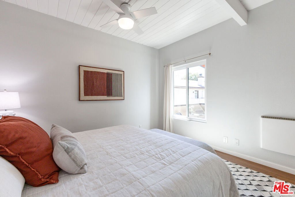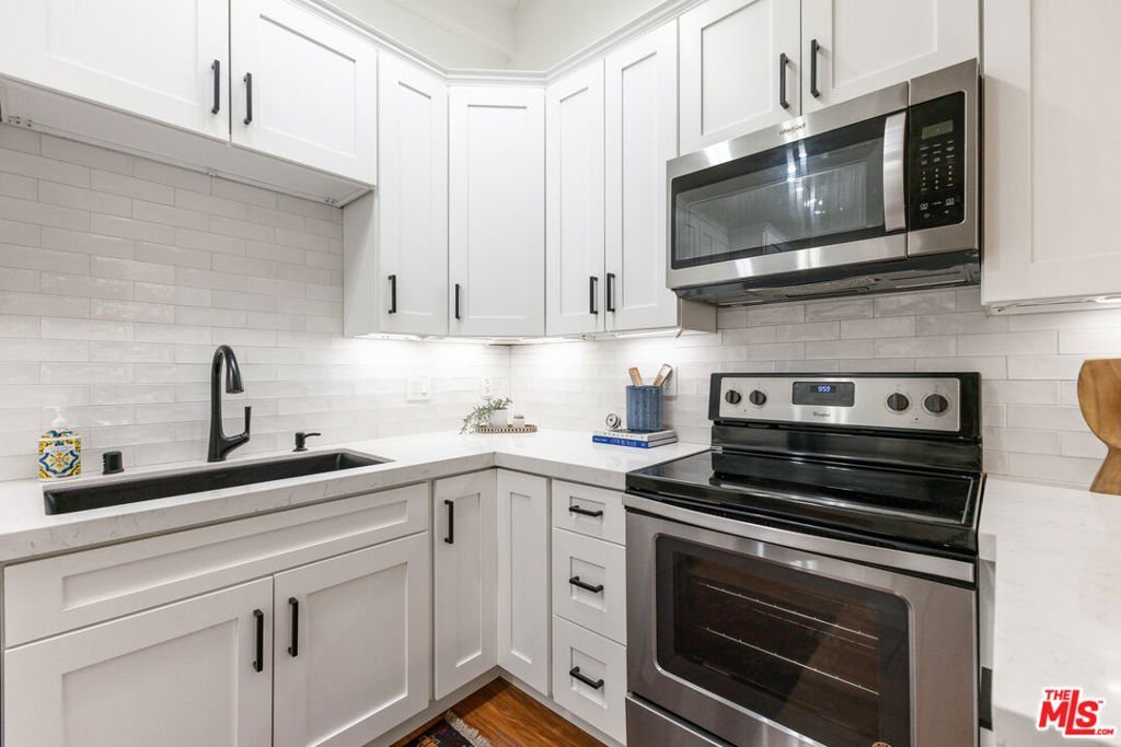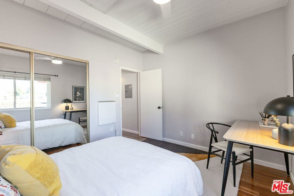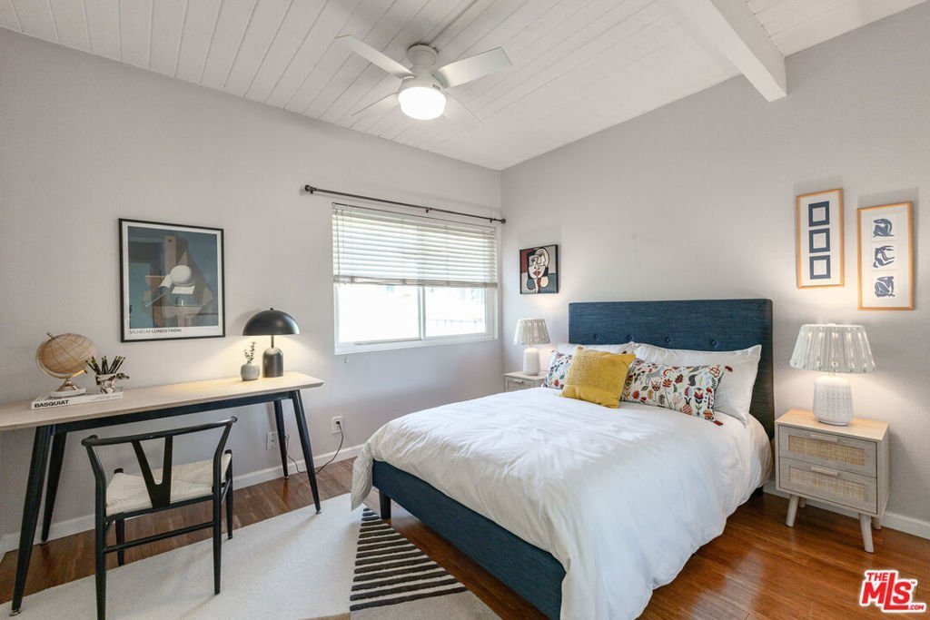 This light-filled 2-bedroom, 2-bathroom condo is ideally located in the prime Valley Village area of Studio City. Charming top-floor unit features soaring beamed wood ceilings and beautiful engineered hardwood floors throughout. The bright and open living room is perfect for relaxing or entertaining and opens to a private balcony overlooking the pool, an ideal spot for enjoying morning coffee or evening sunsets. The kitchen has been tastefully remodeled with upgraded appliances and convenient under-cabinet lighting, creating both style and functionality. The primary bedroom offers a spacious retreat with an en-suite bathroom featuring newly remodeled tile and updated fixtures. Both bathrooms include skylights, bringing in abundant natural light. Additional upgrades include energy-efficient windows/sliding door, an upgraded electrical panel, and sleek ENVI wall heaters that are both energy-efficient and streamlined in design. The well-maintained gated complex features attractive front landscaping, a pool and deck for lounging, resurfaced common areas, copper plumbing throughout, and a newer roof. The unit includes one covered, secure parking space conveniently located near the unit along with storage above. Enjoy a fantastic location close to everyday conveniences such as Starbucks and Gelson's Markets, along with nearby shops, restaurants, and markets. You'll also appreciate the easy access to the upscale dining and boutique shopping along Ventura Boulevard.