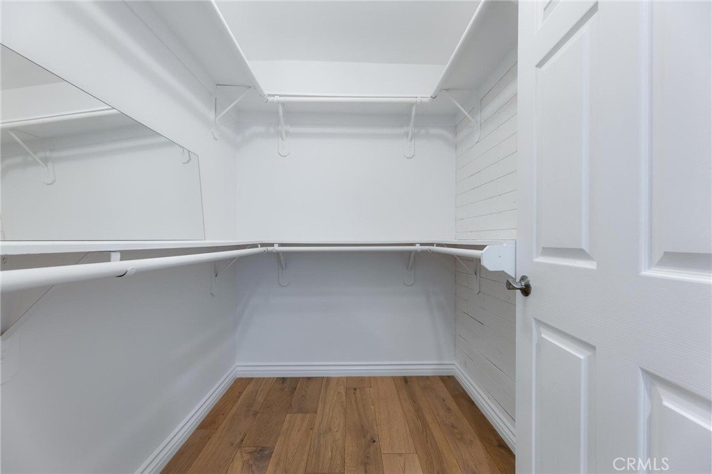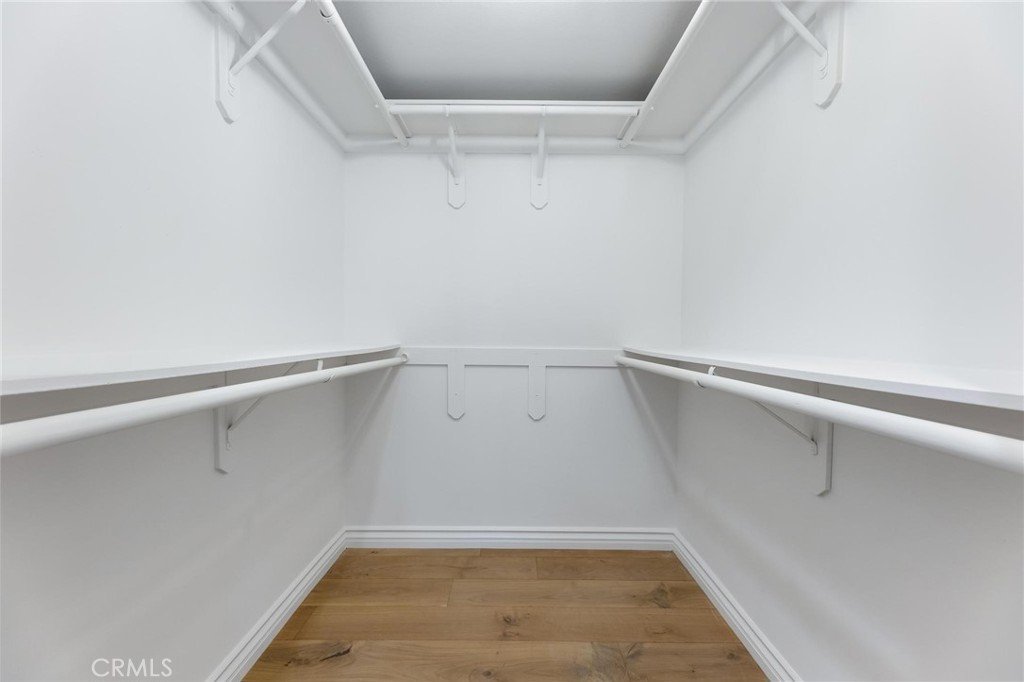 On the lower floor, there’s additional flex space beneath double-height ceilings that opens to the front patio through sliding glass doors, ideal as a home gym, sitting area, or secondary office. Down the hall there are two bedrooms with large walk-in closets and abundant natural light, complemented by a full bathroom.