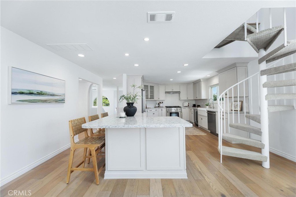 Up the spiral staircase is the loft level, where a flexible bonus living space offers versatility as a home office, creative studio, or additional lounge area. Attached to the loft is another private patio with a peek-a-boo view of the ocean and an uninterrupted breeze.