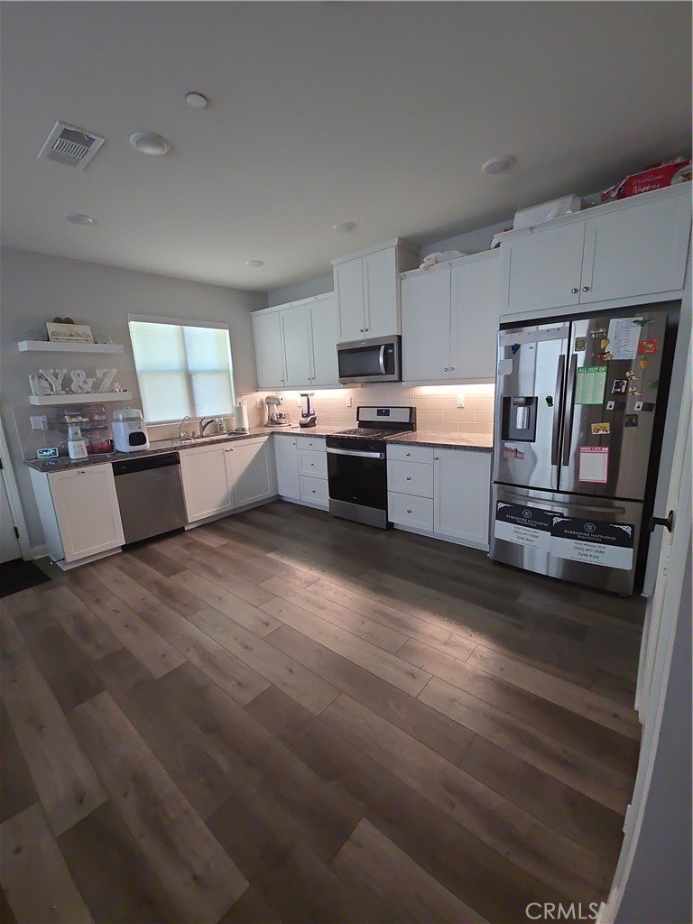 Welcome to your new home at 12276 Starling Ln in The Groves, Whittier: a beautifully-situated corner home designed for upgraded comfort and modern living. This lovely residence features wood vinyl flooring and soft close cabinets throughout the house, blackout curtains upstairs, a single large sink basin, a water softener system, and a fully paid home solar system (no lease!). The kitchen showcases quartz countertops with a stylish backsplash, and an efficient water heater.