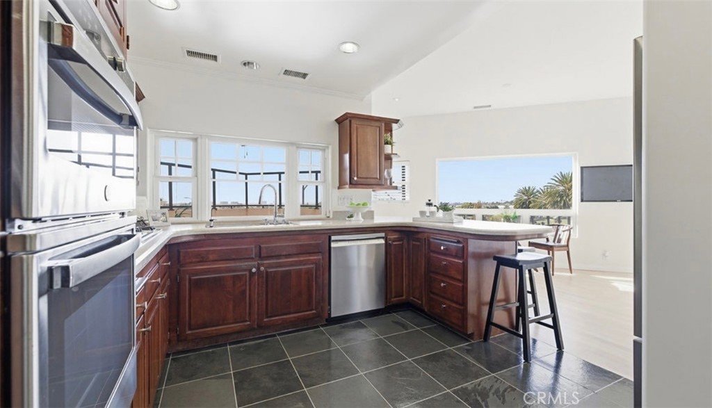 The updated kitchen features newer appliances, generous counter space, and ample cabinetry, flowing seamlessly into the main living and dining areas—ideal for both everyday living and entertaining. Upper levels capture scenic ocean views and offer potential for future enhancements, including possible attic conversion and elevator installation (buyer to verify).