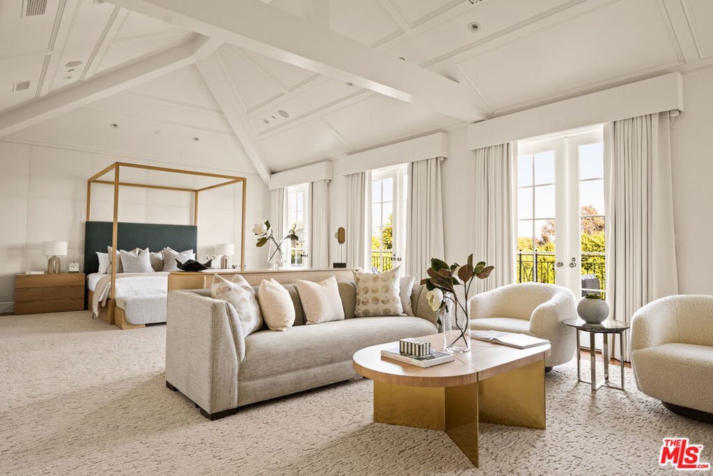 Tucked away in the highly sought-after Lower Riviera of Pacific Palisades, this exceptional traditional estate captures the spirit of understated luxury through impeccable craftsmanship, refined details, and a calm, sophisticated atmosphere. From timeless finishes to thoughtfully executed upgrades and distinctive architectural windows, the home has been designed with both beauty and livability in mind.Spanning three expansive levels, the residence offers a natural sense of flow and balance. On the main floor, bathrooms accented with amethyst and rose quartz bring a subtle, tranquil elegance. Formal spaces include a richly detailed study and a graceful dining room, complemented by a hidden butler's pantry and separate wet barideal for both intimate dinners and larger gatherings.At the center of the home, the chef's kitchen stands out with its honed marble hood, top-tier appliances, and a welcoming breakfast nook. Just beyond, the family room opens effortlessly to a secluded outdoor setting featuring a bluestone terrace, pool and spa with automated cover, built-in BBQ, wood-fired pizza oven, and mature hedging for privacy.Natural light pours into the upper level through skylights, where two ensuite bedrooms and a versatile bonus roomcomplete with custom wallpaper and whiteboard wallsoffer flexibility for work, study, or play. The primary suite is a true retreat, highlighted by vaulted ceilings, linen-upholstered walls, a statement fireplace, motorized blackout shades, and a private balcony with subtle ocean glimpses. Its spa-like bath features hand-laid Michael Aram floral marble, heated floors, dual walk-in closets, and a dual-suite configuration with individual Japanese toilets.The lower level is designed for both relaxation and recreation, showcasing a cutting-edge home theater with a full-scale screen, cinema-quality projection, custom seating, and rich black mohair walls. This floor also includes a generous flex space, an additional bedroom, a custom wine cellar, and a fully equipped gym with mirrored walls and a ballet barre.Additional features include a comprehensive security system, Crestron whole-home audio and video integration, three retractable outdoor awnings, a vegetable garden, and completed post-fire inspection with air-quality remediation for added reassurance.Blending classic elegance with modern comfort, this home presents a rare opportunity to live in one of Los Angeles' premier neighborhoods, just moments from the renowned Riviera Country Club. Offered partially furnished, it includes a thoughtfully curated selection of designer and custom furnishings throughout.