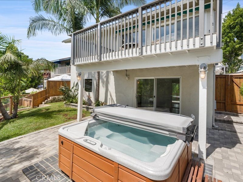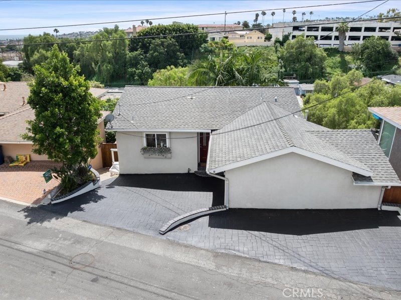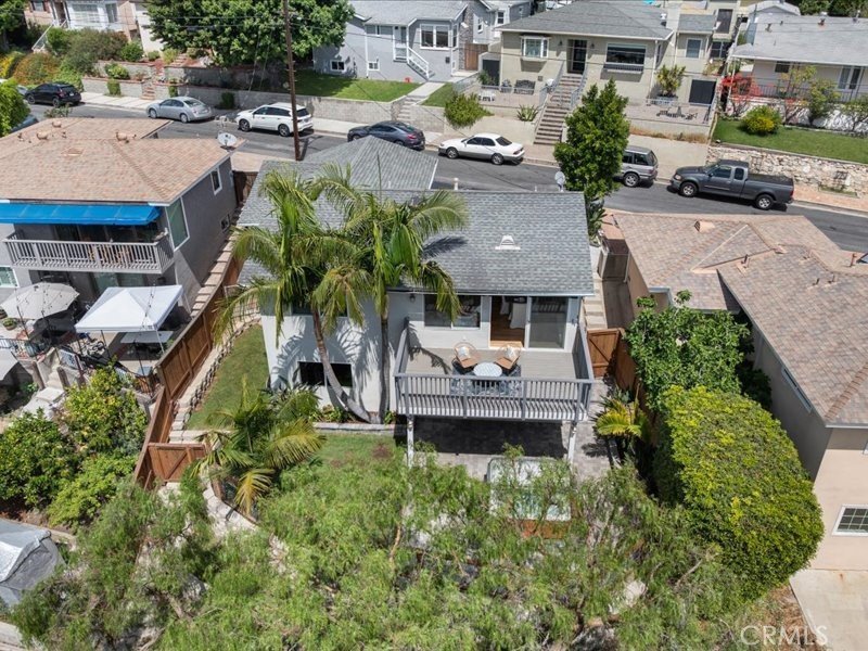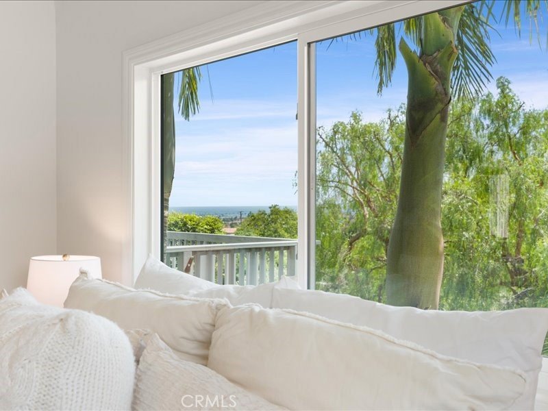 Great view home! Move-in Ready! The large deck adjacent to the living room provides outstanding harbor, coastline, ocean and mountains views, ideal for entertaining. Great views from the living room and primary bedroom! Located on a quiet one way street in the Holy Trinity neighborhood, this property sits on a terraced canyon lot with mature trees and greenery. Bright and open concept living , dining and kitchen area. The kitchen features granite counters and a large island. The living room and upstairs bedroom feature newly refinished hardwood oak floors and both the interior and all exterior wood trim were just painted. Additionally, there's a large den/family room that opens straight onto the private patio deck and landscaped rear yard, where you'll find a spacious jacuzzi hot tub perfect for unwinding. The den could easily be a third bedroom or a large home office area. The property features dual glazed windows, central air conditioning and heating, a retractable awing for the large deck, new sectional garage door, updated vinyl flooring downstairs, a spacious second bedroom, large closets and a large basement storage area.