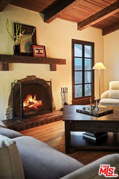 Set within a prime pocket of Glendale's historic Rossmoyne district, this Spanish home has been carefully updated while preserving its authentic character. Everything feels in step with the home's layout and original detailing, giving it a sense of consistency that carries from room to room. The living room is the defining space. A wood cathedral ceiling spans overhead, supported by exposed beams with original hand-painted stenciling. The same detailing continues onto the fireplace mantel. Peg-and-groove wood flooring adds texture underfoot, while an arched picture window brings in natural light throughout the day. The dining room sits just beyond, connected through gentle archways that keep the spaces open while still defined. It's positioned in a way that makes both everyday use and larger gatherings feel easy. The kitchen is well laid out with ample cabinetry, colorful tilework, and a breakfast area that brings in morning light. At the rear of the home, the family room adds a second living space and opens directly to the backyard. A true family room, it's well suited for movie nights and relaxed evenings, with direct access to the backyard. Three bedrooms are arranged along a central hallway, all well proportioned and flexible in use. The primary offers a comfortable footprint and storage, while the additional bedrooms work just as well for guests or workspace. The main bathroom has been updated in recent years, and a second bath adds convenience. The backyard is simple and fun, with a paved patio, a stretch of grass, and mature landscaping. A well-established avocado tree provides shade and a natural focal point. Rossmoyne is known for its gently curved streets, mature trees, and collection of well-preserved character homes, giving the neighborhood a distinct identity within Glendale. Blocks away from Whole Foods, Trader Joes, Fish King and the heart of the neighborhood; Nibley Park, it's the kind of setting where homes feel established and streets feel quiet, while still within easy reach of everything Glendale has to offer.