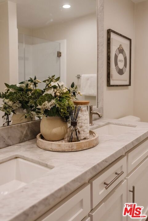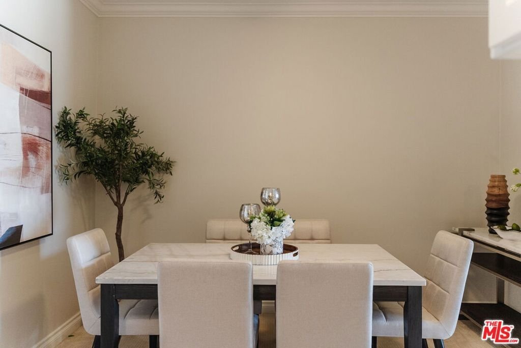 Incredible Santa Monica location just one block from the beach and moments to the shops + restaurants on popular Montana Ave. This renovated, top floor penthouse unit has it all. You're welcomed by a large, formal entry that flows into the updated kitchen showcasing beautiful Carrera marble countertops, stainless appliances, and ample cabinet space. The large dining area located just off the kitchen is perfect for entertaining and flows right into the oversized living room with adjacent dry bar. Just off the living room is a large, covered patio with tree top and mountain views in the distance. The spacious primary suite boasts a huge walk-in closet, bath with dual vanities + separate tub/shower, and large picture window. To top it off, the unit has laundry conveniently located in the hall off the bedroom. HOA dues include Earthquake Insurance and features an onsite exercise room. This unit has it all in a prime Santa Monica location to enjoy the SoCal lifestyle at its best!