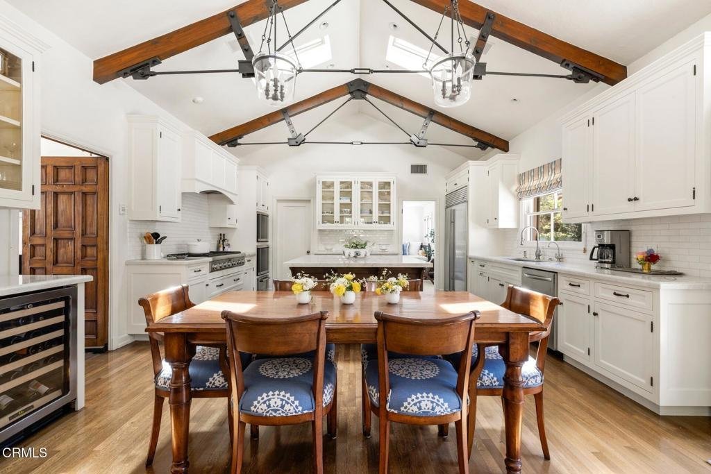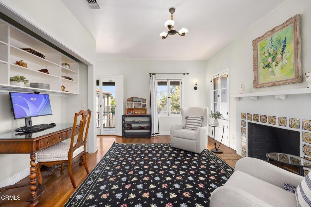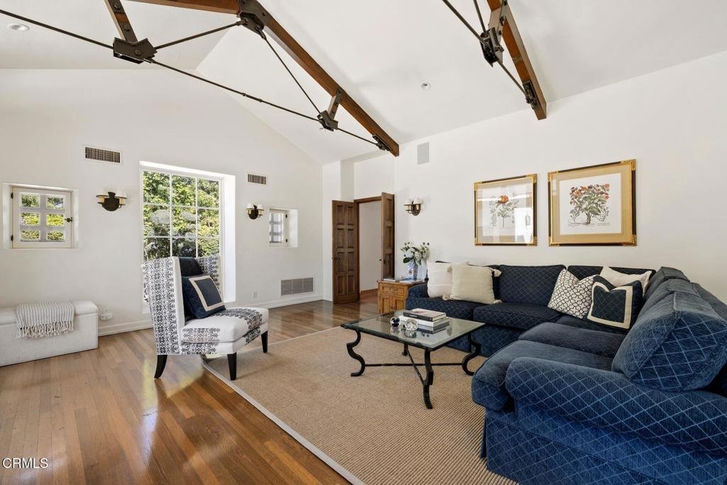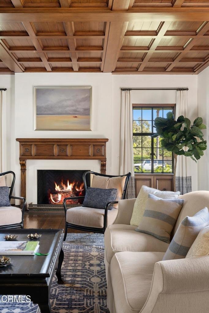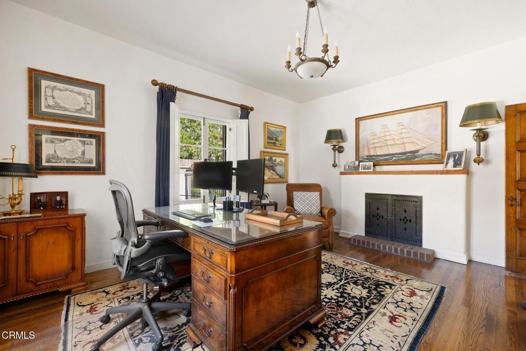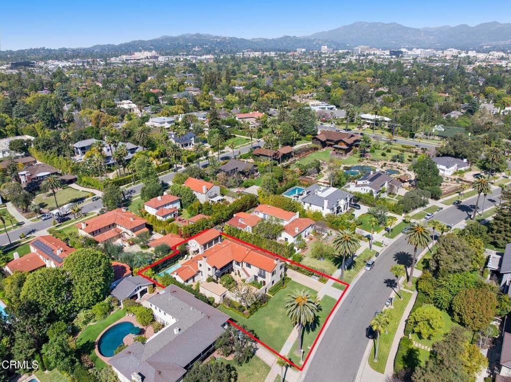 Designed in 1924 by renowned architect Roland E. Coate of the distinguished firm Johnson, Kaufmann and Coate, this exceptional 5-bedroom, 6-bath Spanish Colonial Revival estate is located on desirable Hillcrest Avenue in Pasadena's prestigious Langham estate district near the iconic Langham Huntington Hotel. Thoughtfully restored and meticulously maintained, the residence blends historic architectural character with modern comfort.A classic Saltillo-tile entry introduces a gracious, well-balanced floor plan. The impressive living room features dramatic ceiling heights, a stately fireplace, and custom doors opening to the home's signature central courtyard--an enchanting outdoor living space that serves as a natural extension of the residence. With its covered patio, fountain, and generous dining area, the courtyard is ideal for intimate evenings and elegant entertaining. Opposite the living room, a handsome library with a fireplace and a nearby powder room offers a refined retreat.The formal dining room, with floor-to-ceiling windows, a fireplace, and Saltillo tile flooring, opens to the courtyard and connects seamlessly to a spectacular gourmet kitchen designed for gathering and everyday living. Featuring a vaulted ceiling, a large center island, abundant cabinetry and counter space, a breakfast area, and an adjoining family room, the kitchen forms the heart of the home. An adjacent bedroom and three-quarter bath provide flexible space for guests, office, or staff. Just beyond, the private outdoor retreat offers a lap pool, spa, fireplace, and outdoor kitchen.Upstairs, the primary suite offers a serene escape with a fireplace, light-filled architectural windows, a spacious walk-in closet, and an elegant bath with dual sinks, a soaking tub, and an oversized shower. Three additional bedrooms--one ensuite and another with its own fireplace--along with an additional bath, complete the second level.The lower level includes a home gym, media room, flexible guest quarters or office, three-quarter bath, and storage.Throughout the residence, Coate's architectural brilliance is evident in the grand proportions, soaring ceilings, elegant arches, custom doors and windows, decorative metalwork, hardwood and hexagonal terra-cotta tile floors, and multiple fireplaces.A gated three-car garage and proximity to Pasadena's shopping, cultural institutions, and major freeways complete this rare offering in one of the city's most coveted neighborhoods.