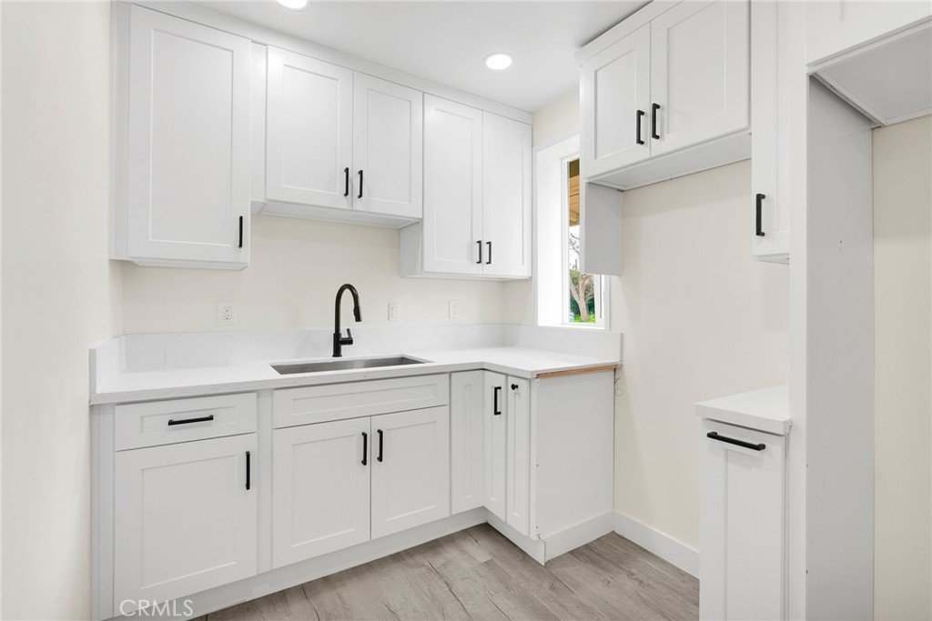Beautifully updated property featuring a 3-bedroom, 1-bathroom main home plus an ADU with 1 bedroom, 1 bathroom, offering flexible living space for extended family, guests, rental potential, or a private home office setup. The main home features a bright, open layout with fresh finishes, recessed lighting, updated flooring, and a spacious living area with sliding-door access to the backyard. The kitchen has been tastefully remodeled with white shaker cabinets, modern countertops, and black hardware/fixtures for a clean, contemporary feel. Both bathrooms have been refreshed, and the bedrooms offer comfortable, functional space. Outside, enjoy a large backyard with a mature tree, a covered patio, and plenty of room to customize, entertain, or expand possibilities. Convenient driveway parking. A great opportunity for an owner-occupant or investor looking for versatility and value.