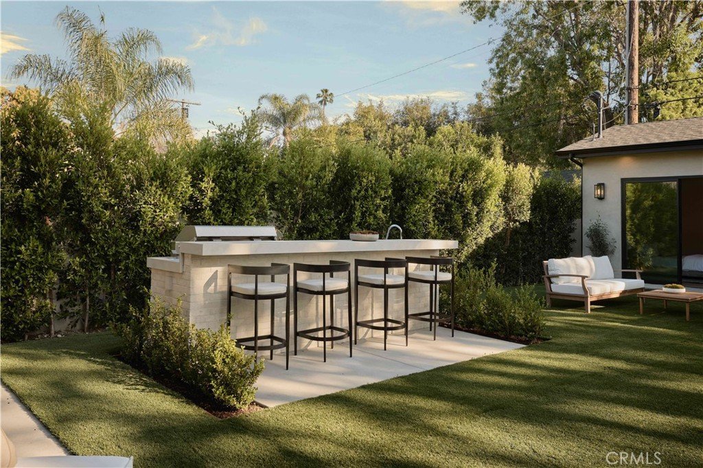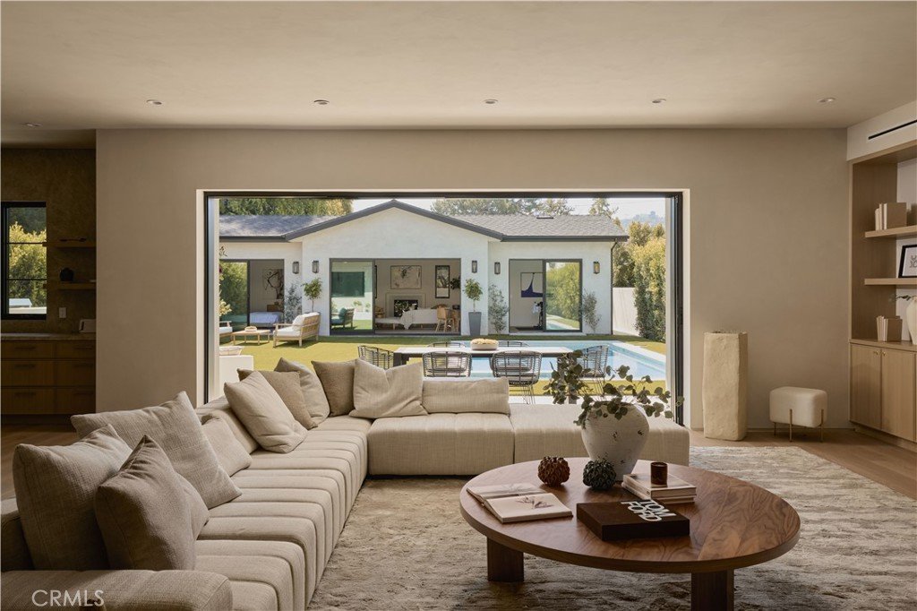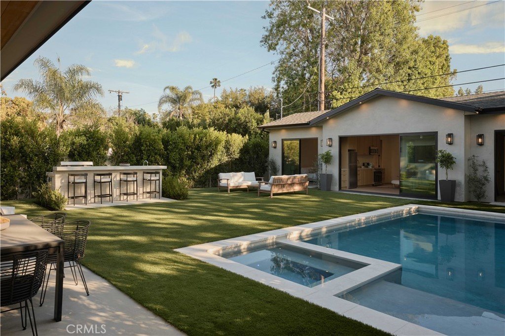 Set behind private gates on an expansive 9,000+ sq. ft. lot, this newly constructed architectural estate features a detached two-bed, one-bath ADU. Designed for modern living, the open-concept main level flows effortlessly from the spacious living and dining area into the designer chef’s kitchen, equipped with top-of-the-line appliances, sleek custom cabinetry and a stunning waterfall island. An oversized sliding glass door disappears into the wall, seamlessly extending the living space to the entertainer’s backyard retreat, where an outdoor kitchen with bar seating invites al fresco dining, and a sparkling pool and spa create a private resort-like escape. Completing the main level is a state-of-the-art home theater, ensuite bedroom and chic powder bathroom. Upstairs, four generously proportioned ensuite bedrooms are complemented by a dedicated laundry room. The primary suite is a true retreat, boasting a private balcony, custom walk-in closet and spa-inspired bathroom with a soaking tub, rainfall shower, double vanity and smart toilet. Additional features include high ceilings throughout, a two-car garage and fully integrated Control4 smart home system that manages lighting, climate, audio and security. The detached ADU offers incredible flexibility, with its own living room, full kitchen, two bedrooms and a bathroom, perfect for guests, extended family or as additional living space. Situated on a quiet tree-lined street, this property is ideally located within the coveted Dixie Canyon School District and just moments away from Ventura Boulevard, Westfield Fashion Square, the Shops at Sportsman Lodge and all that the Valley has to offer.