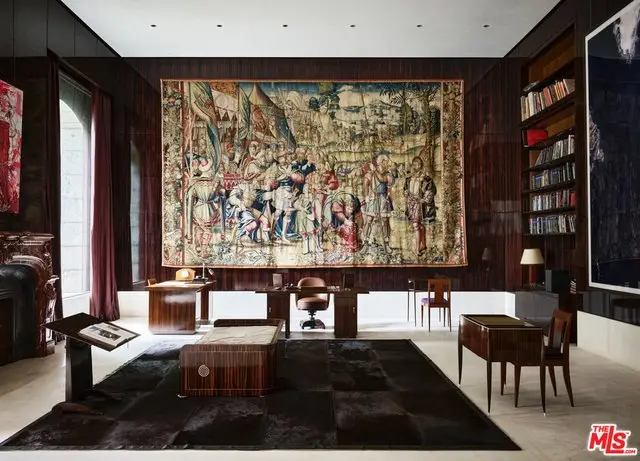 When an estate surpasses architecture and design, it becomes a work of art. Inspired by the iconic Reina Sofia museum in Madrid & built by a world class art collector on the finest street in Holmby Hills, a spectacular backdrop was created for a personal collection of antiquities & contemporary art. After a decade, the result is rarefied 26,522 Sq feet of museum-quality rooms w/soaring ceilings, carefully curated materials & a flow that makes this landmark home feel both expansive and intimate all bathed in natural light. From the soaring 30 ft entry w/400 yr old moorish columns & 16th/17th century Florentine carved ceilings, to the Art Deco library, which has been called "The Finest Room in LA," this rare blending of gallery, artistic temple & personal sanctuary only becomes available once in a lifetime. A gated compound, for the most discerning, features every conceivable amenity; a 3-story guesthouse w/a stunning cinema, an entertainment complex, outdoor ballroom, underground parking.
