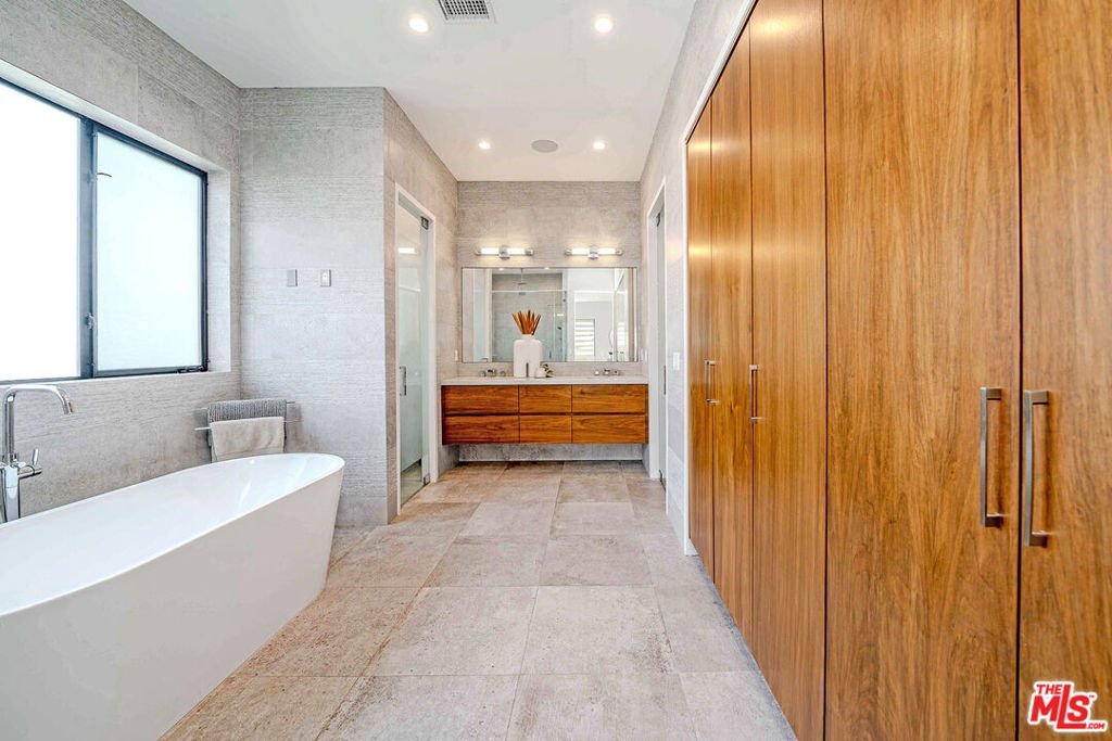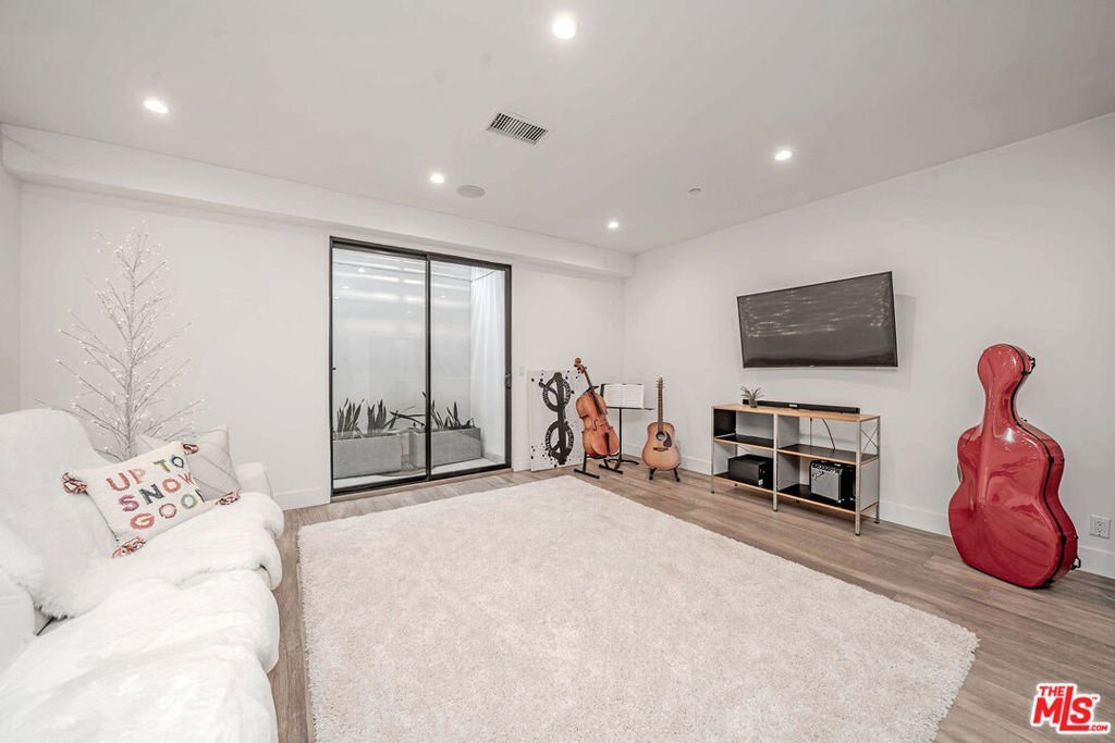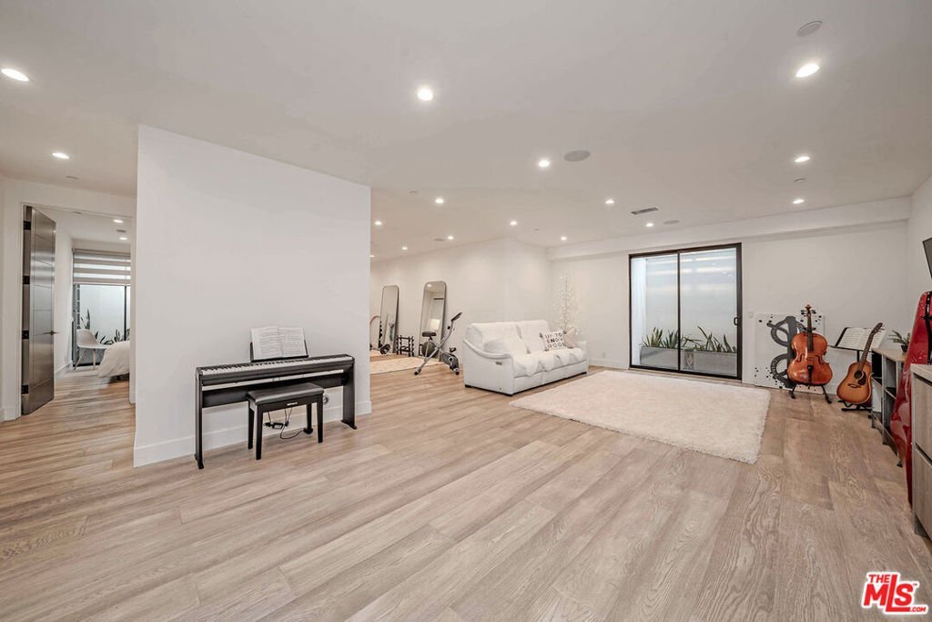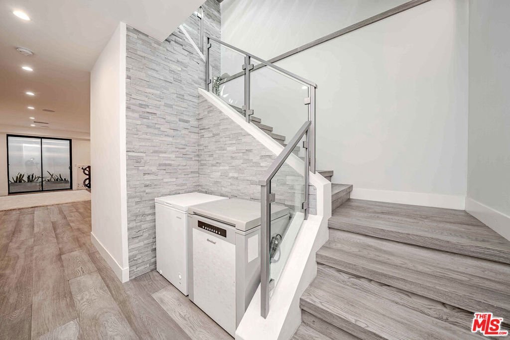 13311 Magnolia offers artistic elegance and visionary design in the heart of Sherman Oaks. This multi-level home features pristine balconies, custom modern finishes, Spanish Porcelanosa tile, floating staircases, gleaming hardwood floors, and thoughtfully placed light fixtures. The master retreat includes a fireplace and walk-in closet, complemented by a second fireplace in the living room. Two in-unit laundry rooms provide convenience. The gourmet kitchen boasts high-end stainless appliances, abundant counter space, and a center island that flows into a bright family room with wide glass doors. Seamless indoor/outdoor living is highlighted by expansive sliding doors opening to a backyard oasis with a tiled pool, patio, artificial grass, and lush ficus and olive trees. Additional spaces include an upstairs den, media/exercise room in the basement, and built-in barideal for entertaining. Open layout, designer lighting, and smart home automation complete this sophisticated residence. Outdoor living is complemented by a tiled pool, patio, and landscaped backyard, with private parking for up to six vehicles: a 2-car enclosed garage and 4 additional spaces in the gated driveway.