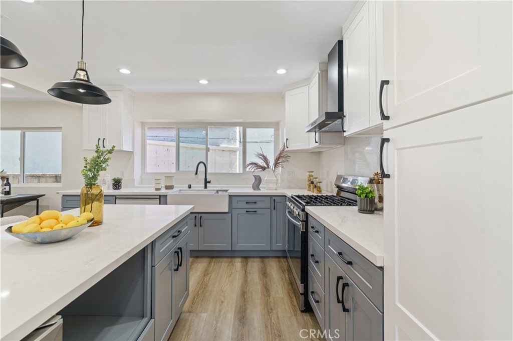 Welcome to this beautifully renovated four-bedroom, three-bathroom home located in the desirable neighborhood of Hawthorne. This residence perfectly combines comfort, style, and convenience. Recent upgrades include new windows, fresh interior paint, new vinyl flooring, new doors, modern kitchen cabinets with quartz countertops, a gas stove and range hood, dishwasher, undermount sinks, stainless steel appliances, recessed lighting, updated bathroom tile and vanities, renovated closets, and a redesigned laundry room. Enjoy cool ocean breezes just a few miles from the beach. The spacious layout features four well-sized bedrooms, including a large primary suite with an en-suite bathroom and ample closet space. The backyard features fruit trees and planters, perfect for entertaining or gardening. The home sits on a generous 6,202-square-foot lot and features a four-car garage with excellent potential to be converted into an Accessory Dwelling Unit (ADU)—offering new homeowners the flexibility to live in the main house while transforming the garage into a rental unit, guest house, or private workspace.