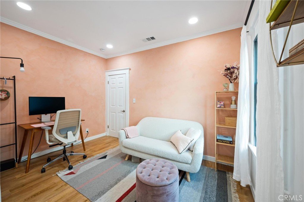 Stunning Craftsman bungalow blending classic charm with modern updates. Thoughtfully designed with an open flow between the living, dining, and kitchen areas, the home offers a comfortable yet refined living experience. The updated kitchen is highlighted by a center island and contemporary finishes. A detached garage has been converted into a versatile bonus space, well suited for a home office, gym, or guest use. Recessed lighting complements the main living areas. Prime location just minutes from Glendale shopping, dining, and nightlife, with convenient access to Northeast LA and nearby hiking trails.