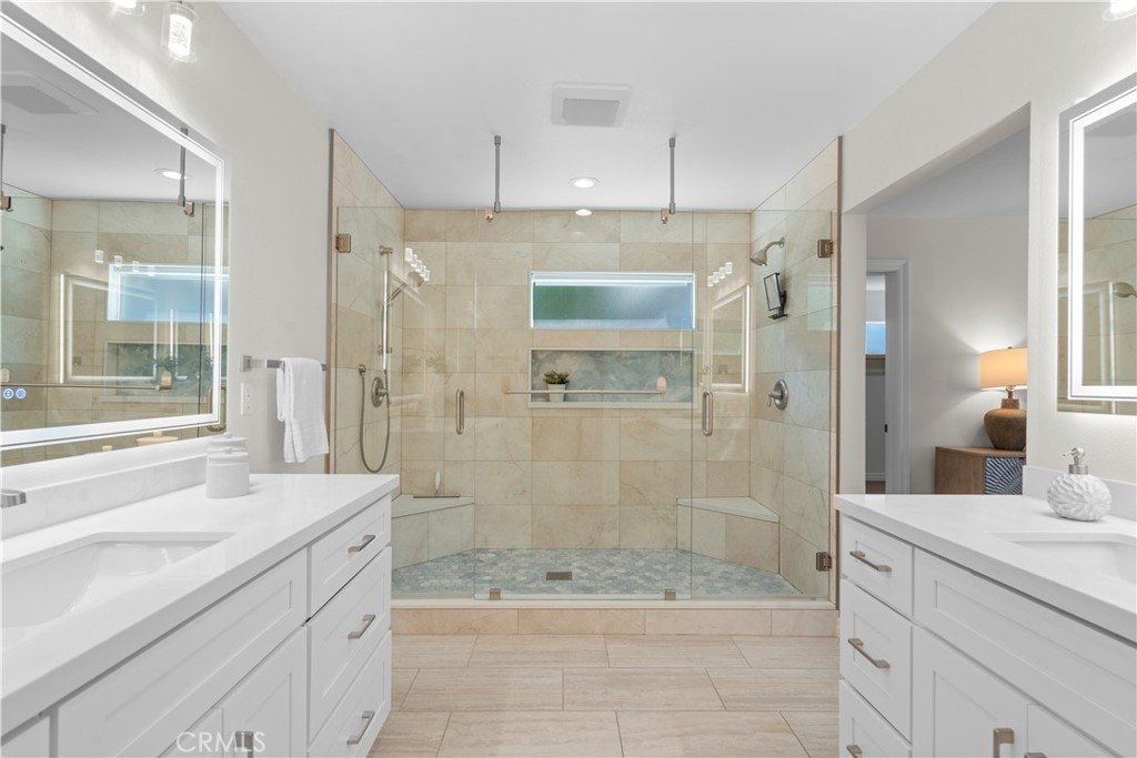Welcome to this beautifully upgraded 4-bedroom, 3-bath home with a huge bonus room, offering 2,938 sq ft of living space on a spacious 10,636 sq ft lot. Located in the highly sought-after WVUSD, this home combines luxury upgrades, smart technology, & an exceptional location. Enjoy breathtaking sunset views from the backyard & mountain views from the bedrooms & expansive bonus room, creating a peaceful & scenic setting. The backyard is perfect for relaxing or entertaining, featuring a pool, spa, & fire pit—ideal for enjoying Southern California evenings. A standout feature of this home is the large downstairs bedroom with a full bathroom (shower) & walk-in closet, perfect for multi-generational living or a guest suite. The fully remodeled kitchen (2024) is a chef’s dream, featuring premium KitchenAid appliances, including a 48” six-burner smart gas range with electric griddle, dual ovens, & two convertible wok burners, all under a professional 48” range hood. Additional highlights include a 36” French-door refrigerator, triple-rack dishwasher, large island with sink & abundant storage, soft-close cabinets & drawers, & instant hot water at the kitchen faucet. The luxurious primary bathroom has been beautifully remodeled, featuring a huge marble walk-in shower with double doors & dual showerheads, illuminated mirrors, a Moen bidet toilet, & cabinetry & counters that match the elegant kitchen design. The primary suite also offers a large walk-in closet. Smart home upgrades include a Schlage Zigbee-connectable electronic deadbolt, multiple smart switches & dimmers, a smart thermostat, security cameras, & a smart sprinkler controller, making whole-home automation easy & convenient. The home is served by fiber internet, with multi-gigabit connections available from internet providers. Energy-efficient upgrades include fully paid solar with 32 panels & dual inverters, Low-E windows (approximately 3 years old), brand-new R38 attic insulation, & a whole-house fan to help reduce cooling costs. The attic is sealed & California Title 24 compliant. Additional upgrades include new luxury vinyl plank flooring throughout the entire first floor & a garage with overhead racks & abundant storage space. This exceptional home offers modern upgrades, flexible living space, scenic views, & a prime location in one of the area’s most desirable school districts. Walnut Elementary & South Pointe Middle School also offer a dual immersion program.