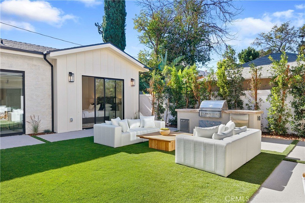 Introducing an exceptional new construction estate situated in the heart of Sherman Oaks. This property features a detached two-bed, one-bath ADU, complete with its own living room and full kitchen, perfect for guests, extended family or as additional living space. Designed for modern living, the primary residence showcases a spacious open-concept living and dining area that opens effortlessly into the gourmet chef’s kitchen, which is outfitted with top-of-the-line appliances, double islands and a walk-in pantry. An oversized sliding glass door seamlessly extends your living space into the serene backyard retreat, where a sparkling pool/spa and built-in BBQ create the perfect setting for outdoor entertaining. Completing the main level is an ensuite bedroom, chic powder bathroom with a one-of-a-kind natural stone sink and a mudroom with direct access to the two-car garage. Upstairs, four generously sized ensuite bedrooms are complemented by a dedicated laundry room. The primary suite offers a peaceful retreat highlighted by a private balcony, dual walk-in closets and a spa-inspired bathroom with a soaking tub, oversized rainfall shower and double vanity. Additional features include a state-of-the-art security system with cameras, high ceilings and built-in speakers throughout. This property is ideally located within the award-winning Dixie Canyon School District and sits just moments away from Ventura Boulevard, Westfield Fashion Square, top private schools and so much more.