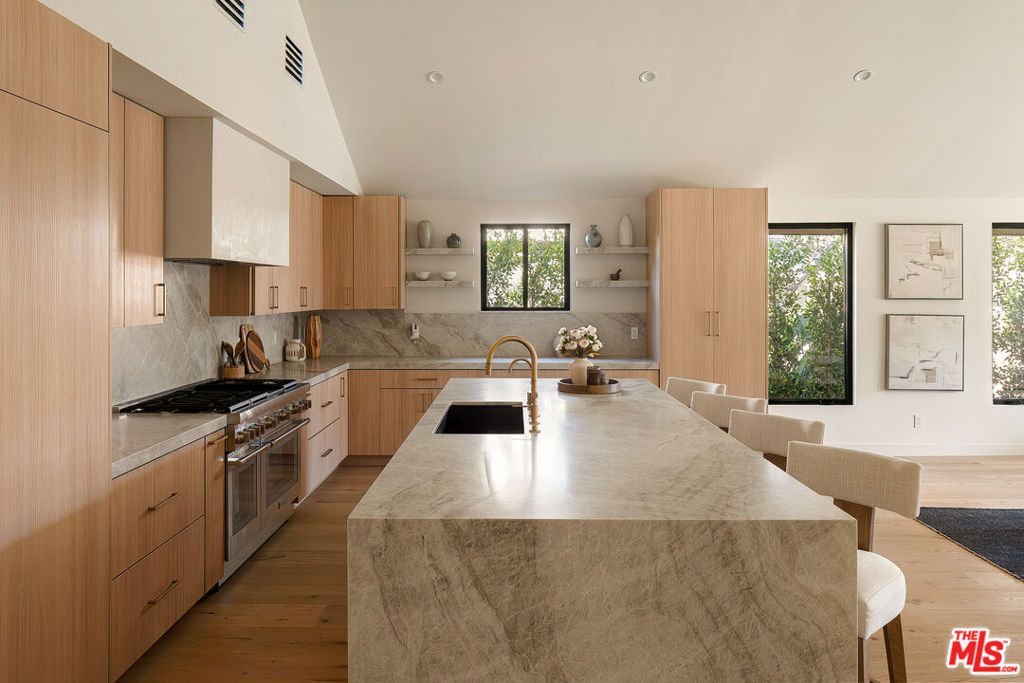 Situated in the coveted Chandler Estates neighborhood of Sherman Oaks, this new development home offers an inviting open-concept floor plan with lofty vaulted ceilings that carry throughout. Designed for modern living, the spacious living and dining area flows seamlessly into a beautifully appointed chef's kitchen outfitted with top-of-the-line appliances, sleek custom cabinetry and a stunning waterfall island. This home features three generously sized ensuite bedrooms, including a luxurious primary suite with a custom walk-in closet and spa-inspired bath, complete with a soaking tub, large glass-enclosed shower and double vanity. Step outside to a private backyard retreat, where you'll find a built-in BBQ with bar seating and a louvered pergola above, along with a covered patio and large grassy yard, the perfect setting for year-round entertaining and relaxation. Additional highlights include a dedicated laundry room and two-car garage equipped with an EV charger. Ideally located just moments from Westfield Fashion Square, Ventura Boulevard's premier shopping and dining, top-rated public and private schools, and so much more.