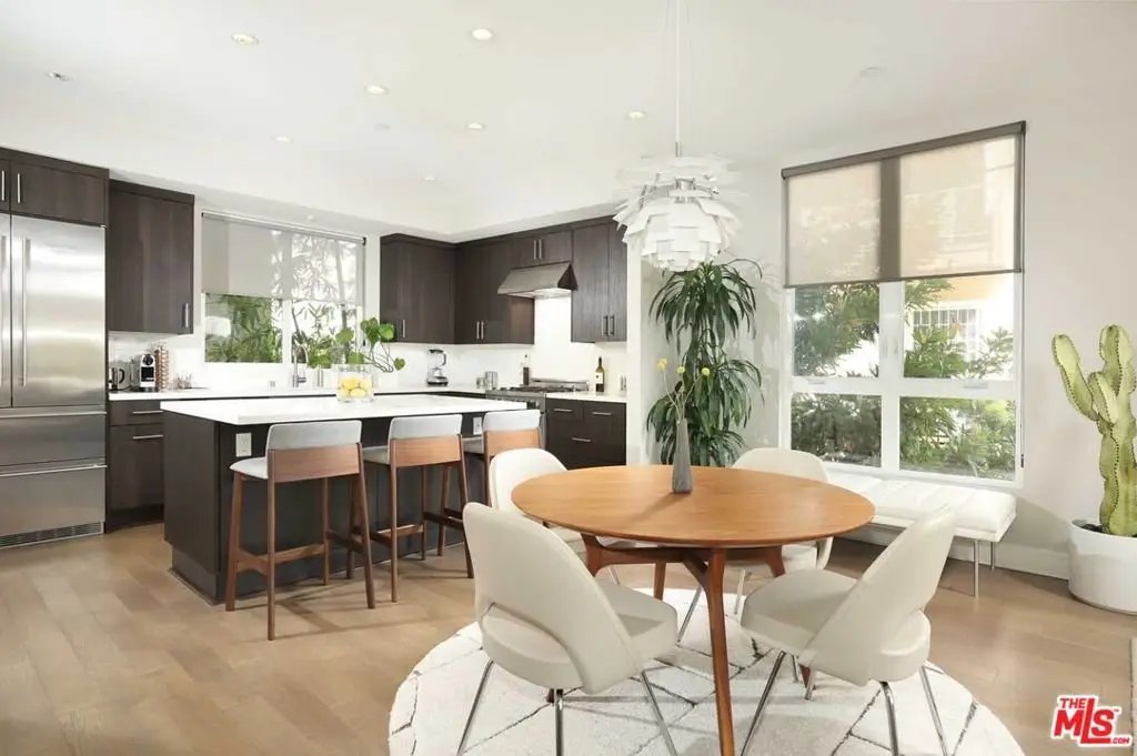 Great opportunity to acquire an exceptional architectural townhome in one of the most unique pocket neighborhoods along the World famous Sunset Strip. Enjoy a chic urban living experience in this rare end-unit bathed in natural light, solid construction and privacy. Featuring 2 beds plus an office with an open kitchen-dining-living room floor-plan and a roof deck you can relax at home on a lazy Sunday, meander to the local Farmer's market and entertain guests. A cook's dream kitchen with lots of counter space, good storage and high-end appliances set the stage for small or large gatherings. The primary bedroom is a comfortable resting place with large windows, walk-in closet and spacious bathroom with double vanity. Roof-top deck with views and room to soak up that beautiful California sunshine. Direct access 2 car garage, laundry inside unit, custom window treatments. No shared walls.