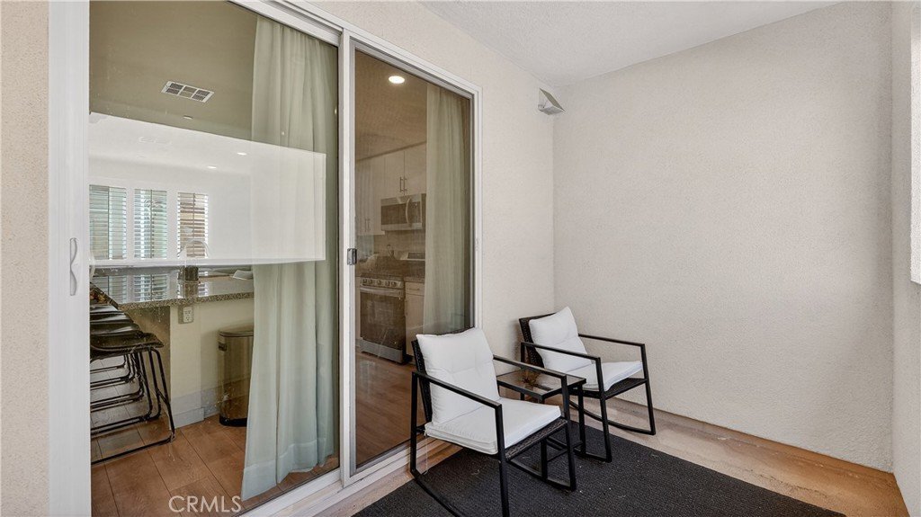 The interior features whole-house recessed lighting, plantation shutters, and premium flooring throughout. The second level offers a bright, open floor plan with modern laminate flooring and a gourmet kitchen that is a true centerpiece. It boasts sleek granite countertops, a deep farmhouse sink, custom white cabinetry with soft-close drawers and full-extension slides, and high-end Samsung stainless steel appliances. A reverse osmosis water filtration system and a private balcony just off the living area make this the perfect space for both daily living and entertaining.