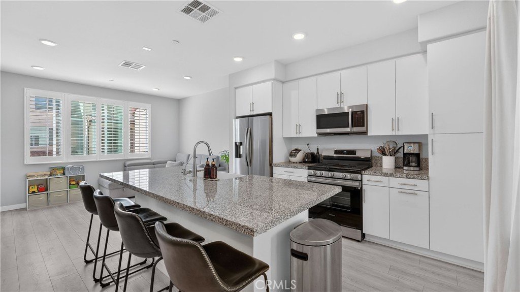Welcome to 14116 Bay Street, a thoughtfully upgraded tri-level condominium in the desirable Laurel Walk community of La Mirada. Built in 2022, this modern condo is favorably situated within the community, just steps from the outdoor BBQ area and fire pit. The home far exceeds builder standards, offering a rare combination of sustainable energy, sophisticated air and water purification, and custom luxury. The home’s commitment to efficiency is anchored by an owned Sunrun solar system (2.72 kW) with Protection Plus, providing significant long-term energy savings.