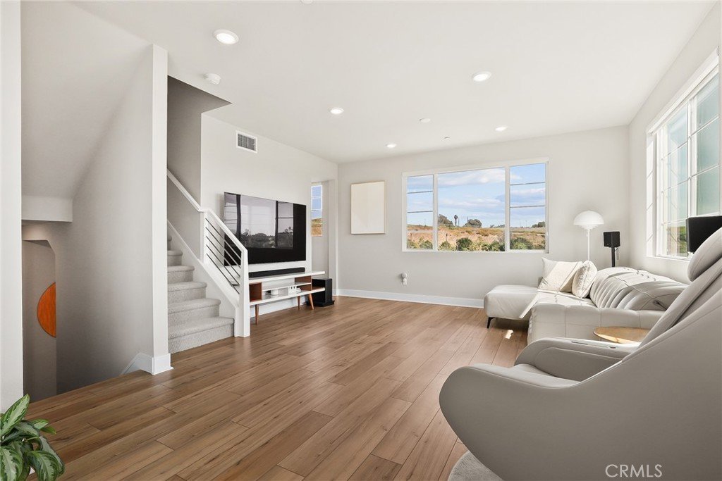 PRIME END UNIT within a newly-built gated community, offering tranquil evenings and stunning sunrise views over green fields and the harbor. Enjoy the desirable Residence 4 floor plan in this like-new, energy-efficient townhome. The entry level features a convenient two-car garage, a storage closet, and one bedroom with an ensuite bathroom, plus a private outdoor patio space that is ideal for kids or pets to play. The second floor boasts a wide-open great room with views of the parks. The kitchen is a chef's delight with a large central island, ample storage, a walk-in pantry, and an adjacent balcony perfect for a BBQ and enjoying the breeze. The upper level is home to the large primary suite, a quiet sanctuary for rest and relaxation, complete with a walk-in closet and a sumptuous bathroom. Two additional bedrooms share a full bathroom, conveniently located next to the laundry room. Enjoy long-term utility savings with fully owned solar panels and all the appliances are included. The home features smart conveniences such as a Video Doorbell, WiFi garage door opener, WiFi door lock, WiFi 2-stage thermostat, motion sensors, and control center. The community provides residents with access to an array of resort-style amenities. The location is superb, just a few miles from beautiful beaches and fabulous cliff walks along the Pacific Ocean. Enjoy easy access to the freeway along with a wide selection of nearby dining, shopping and everyday conveniences.