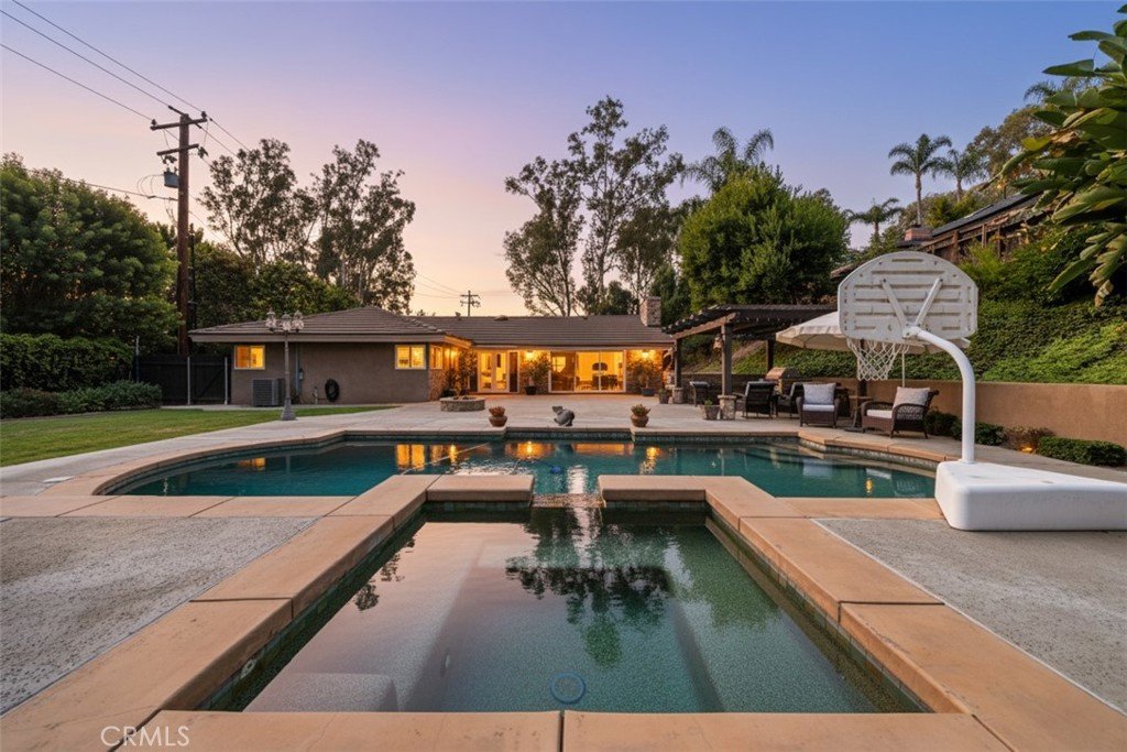 This exceptional, impeccable, and beautiful turnkey Mar Vista Heights home stands proudly above the rest, surrounded by mature trees, lush landscape and picturesque neighborhood views. Extremely well-maintained charming home offers an open floor plan with a light and airy ambiance throughout. Spacious chef's kitchen equipped with top of the line built in appliances, granite counter tops, newer solid wood cabinets, and viewing window. Adjacent, is the heart of the home, a large family room with high wood beam ceiling, impressive stone faced fireplace, tasteful built in cabinets, bookshelves and newer sliding doors to access the gorgeous backyard. Formal living and dining rooms also have access to the backyard. Five bedrooms total, including a generous sized primary en-suite with ample closet space and luxe bathroom with 2 sink granite counters. Guest bathrooms also tastefully updated. On the west wing, next to kitchen, a private, versatile en-suite bedroom with a private updated bathroom that makes a perfect space for guests and/or multi-generational living. Newer windows/sliding doors throughout, laminate flooring, plantation wood shutters, recessed lighting and many more features! The outdoor space takes this home to another level! Stunning and private, resort like, backyard features a large pool and spa, entertainers BBQ area, firepit, grassy and lots of patio areas for outdoor alfresco dining, entertaining or simply enjoying morning coffee or a glass of wine at the end of day. Front yard and driveway are very spacious, can easily accommodate your boat or other recreational toys. When its time to leave this oasis, you'll find parks, shopping and restaurants just minutes away...Don't let this one get away, make this home you forever home!
