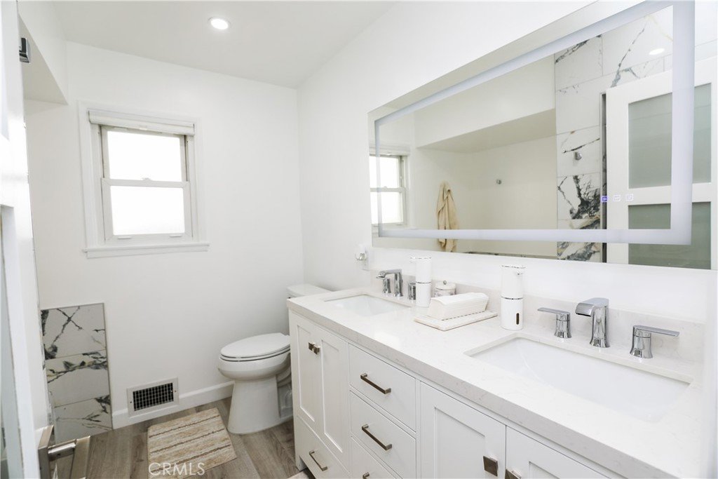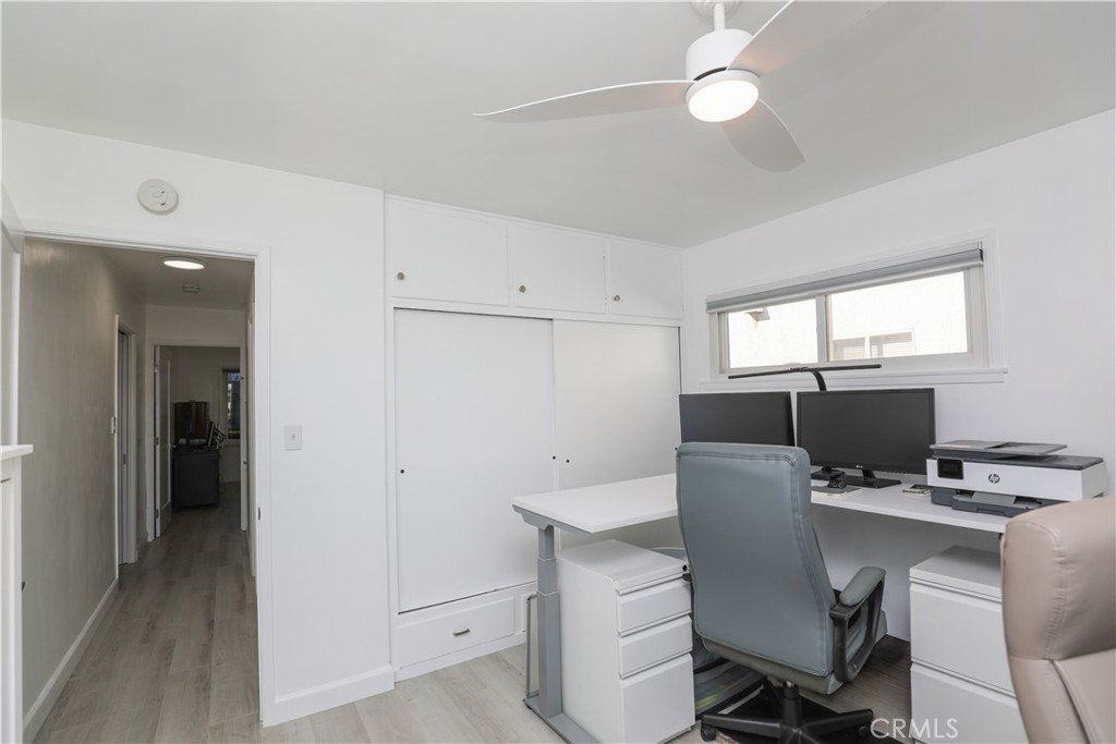 Welcome to a meticulously maintained, thoughtfully upgraded home offering timeless character, modern comfort, and true pride of ownership. Situated on a generous lot, this turnkey residence reflects years of documented improvements and is truly move-in ready. The front of the home creates an inviting first impression with mature palm trees, manicured hedges, a charming white picket fence, and a welcoming front patio with recently refinished flooring. Inside, the bright living room showcases updated wood-like flooring, vaulted wood-beam ceilings that add warmth and architectural charm, and recessed lighting throughout. The primary bedroom is a private retreat featuring a striking stone fireplace, its own exterior entrance, and a discreet secondary “secret” door hidden off the main living area, offering rare flexibility and privacy. The remodeled kitchen is designed for both function and style with quartz countertops, stainless steel appliances, an oversized single-basin stainless steel sink, custom cabinetry with under-cabinet lighting, a tile backsplash, a built-in beverage station surrounded by custom cabinetry, and a quaint dining area enhanced with pendant lighting. The main bathroom has been tastefully updated with modern vanities, undermount sinks, a back-lit digital mirror, satin nickel fixtures, newer window treatments, and dual-pane windows that enhance comfort and energy efficiency throughout the home, while a second water closet is conveniently located in the laundry room and includes a large utility sink. Major system upgrades include a newer roof, upgraded electrical panel, new gas line from the meter to the home, central heating and air, rain gutters, cleanouts, and extensive electrical improvements, along with interior and exterior paint, upgraded interior doors, and updated flooring. The backyard offers a private retreat with vinyl fencing, new driveway and side gates, fresh landscaping, and a spacious covered patio with lighting and electrical, ideal for entertaining or relaxing year-round, and additional highlights include a detached garage with an attached covered storage shed and a long driveway. With an extensive list of improvements including windows, roofing, electrical, HVAC, kitchen and bath remodels, flooring, landscaping, fencing, and more, this home offers long-term value and peace of mind and is conveniently located near schools, shopping, dining, and major freeways in the desirable city of Whittier.