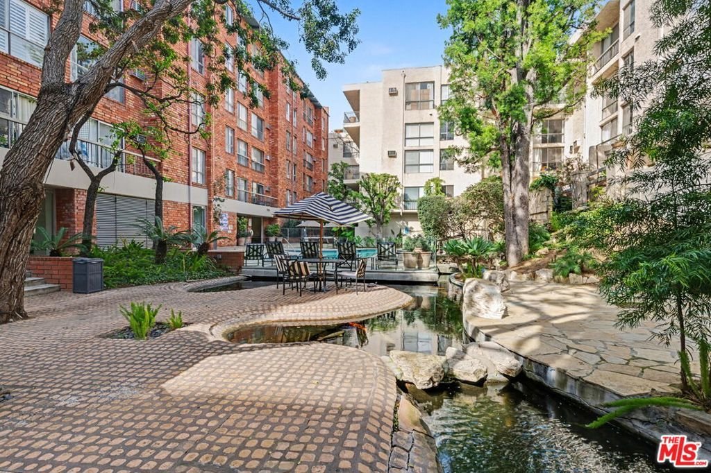 The Colony at Westwood. This recently remodeled, spacious one bedroom, one bathroom condominium is done in a neutral, elegant style. Brick accent walls add interest to these very tasteful interiors. Newer appliances, countertops, bathroom vanity and more make this condominium turn-key ready. Plenty of storage. The exposure is fabulous overlooking an expansive, central courtyard with mature trees and landscape, pool, spa, several deck areas and even a koi pond. An unusual amount of community amenities make this a very special place to live. Please see the full listing details for a comprehensive list of what the building has to offer. The 24-hour Guarded Colony is centrally located, close to the 405 and within close proximity to UCLA, to Westwood Village, to Century City, to Beverly Hills and to Brentwood to and all the shopping and dining each area features. Subterranean garage with one parking space included. Well-Regarded Fairburn Avenue Elementary.