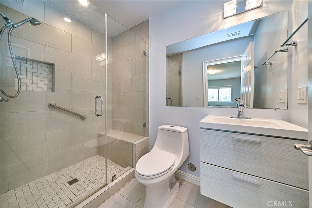 A split-level design leads down to two bedrooms with backyard access, while windows frame serene views of the lush, beautifully landscaped yard. The backyard is a private retreat, with charming details, manicured hardscape, and an atmosphere of calm and relaxation.