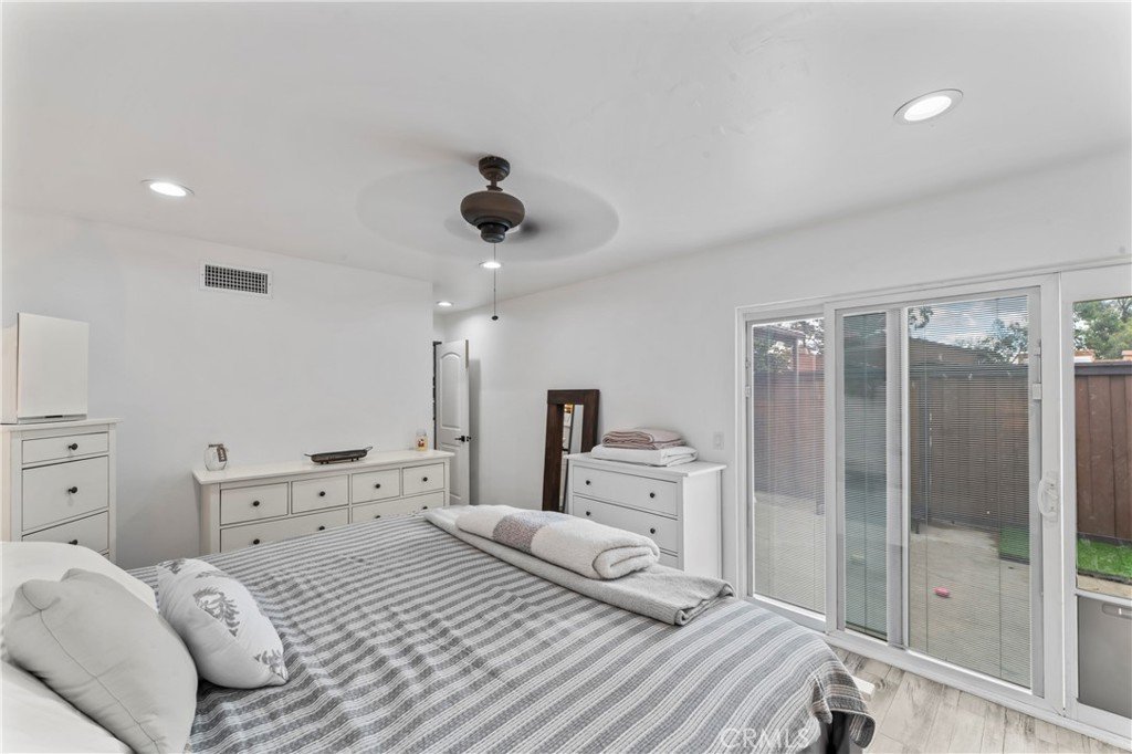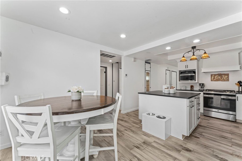 Rare Single story remodeled 2+2 Townhome with direct access oversized Garage & private Patio! Step into this beautifully upgraded home where modern design meets thoughtful craftsmanship. This turnkey 2+2 home blends modern upgrades, smart features, and timeless finishes—ready for you to move in and enjoy. Featuring elegant Duttonwood Ash matte ceramic tile flooring throughout, this residence offers a seamless, contemporary feel enhanced by new baseboards, fresh designer paint, recessed lighting, updated interior doors, and refined electrical finishes. Custom, hand-crafted American solid basswood window shutters with a sophisticated double-panel, split-tilt design and triple-layer finish add timeless elegance and privacy throughout the home. The fully renovated kitchen is a true showstopper, designed for both style and functionality. It boasts sleek quartz countertops with a rich charcoal base and warm mineral veining, complemented by custom cabinetry with soft-close drawers and doors, pull-out shelving, lazy Susan corner units, and a built-in double trash system. Include a unique versatile island with cabinetry on both sides. Premium appliances—including an LG refrigerator and microwave, plus GE stove and dishwasher—elevate the space, along with a Broan NuTone range hood featuring Wi-Fi connectivity. A striking Kraus Bellucci black granite composite sink with accessories completes this chef-inspired kitchen. Both bathrooms have been tastefully upgraded with modern vanity cabinets, matching quartz countertops, ceramic vessel sinks, farmhouse-style mirrors, and updated fixtures, creating a spa-like atmosphere. The bedrooms offer charm and character with barn doors and the Primary has a stylish farmhouse ceiling fan with dual-finish blades and reversible motors for year-round comfort. The garage has been extensively improved with new drywall, trim, and recessed lighting, and includes a recently replaced Rheem Performance 40-gallon ultra-low NOx water heater. The upgraded LiftMaster Elite jackshaft garage system features a fully insulated steel-backed door and Wi-Fi-enabled myQ access. The garage roof was newly installed by the HOA in April 2025, adding additional peace of mind. A lovely quaint and secure community of 64 units nearby all amenities and close to several freeways & recreational facilities. For added convenience, furnishings are available for purchase.