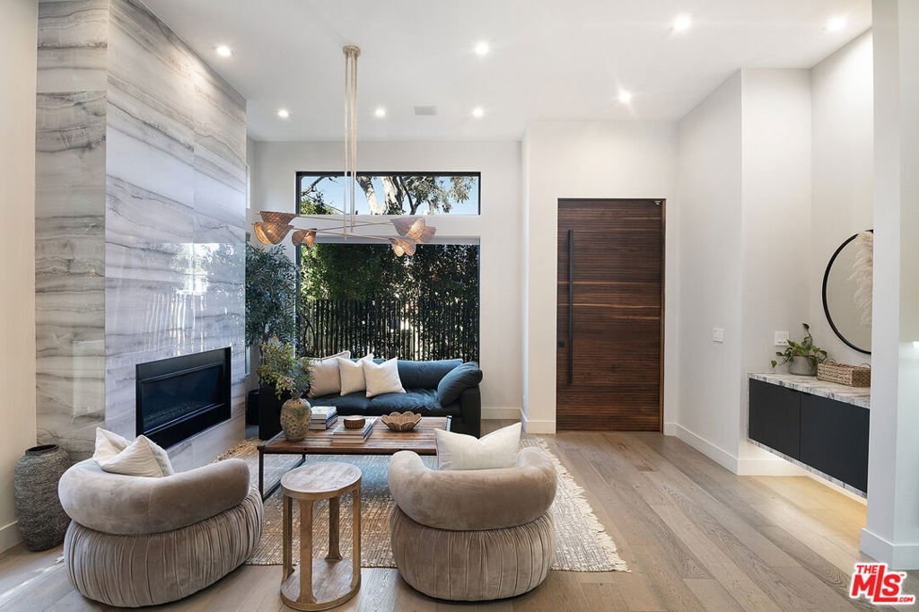 There are homes, and then there are statements. Elevated above the street on a magnificent knoll in the heart of Sherman Oaks, this south-of-the-boulevard modern masterpiece is without question the finest home in the neighborhood and it's not close. From the architecture to the finishes to the upgrades, every detail has been executed at the highest level. This is the one buyers have been waiting for. From the moment you pass through the newly installed secured gated driveway, the experience begins. The property commands attention at every turn, and what awaits inside is nothing short of extraordinary. Step through the front door and the open floor plan takes your breath away soaring ceilings, a formal living room anchored by a floor-to-ceiling marble fireplace, and a striking designer light fixture in the dining area that sets the tone for everything that follows. The staircase alone will stop you in your tracks: all-glass railings with oversized steel rivets form a museum-worthy sculpture that anchors the heart of the home.The chef's kitchen is built for those who love to cook and love to entertain oversized waterfall island, professional-grade stainless appliances, custom cabinetry, and storage that never runs out. A butler's pantry connects the kitchen to the dining room seamlessly, while a full wet bar with flush-mounted wine fridge anchors the opposite side. Sliding Fleetwood glass doors erase the line between indoors and out, opening directly to one of the most impressive backyards in the Valley.Upstairs, four en-suite bedrooms each serve as their own private retreat. The primary suite is in a class of its own a double-sided fireplace warms both the bedroom and the spa-inspired bathroom, creating a true sanctuary at the top of the home.Outside, the resort-style backyard delivers on every level: a zero-edge pool with spa and modern tiled waterfall, a cabana with fireplace and pool-house bathroom, a fully equipped outdoor kitchen, professionally installed turf, lush landscaping, and a plunge sauna. This is not a backyard it's a private retreat you'll never want to leave.Inside, every room has been thoughtfully refined since the original purchase custom wallpaper in the kids' rooms, detailed architectural molding, updated light fixtures and sconces throughout, and rooms repainted in warm greens and blues that give this home a feeling of warmth and livability that newer construction rarely achieves. A brand new AC unit and fully integrated Control 4 smart home system tie it all together.And for those who value privacy and peace of mind, this home delivers at the highest level. Fully gated and secured, it is outfitted with a top-of-the-line, state-of-the-art security system including a front driveway gate, extended side gates with security spikes, 360 hardwired Ring cameras, 8 motion-sensor AJAX cameras covering the full exterior, shatter-proof security film on every downstairs window, and a dedicated safe room. There is simply nothing else on the market that offers this level of protection.This is not the home it was in 2021 it is dramatically better in every way. It shows more beautifully and lives more comfortably. Opportunities like this do not come twice. Don't miss it.