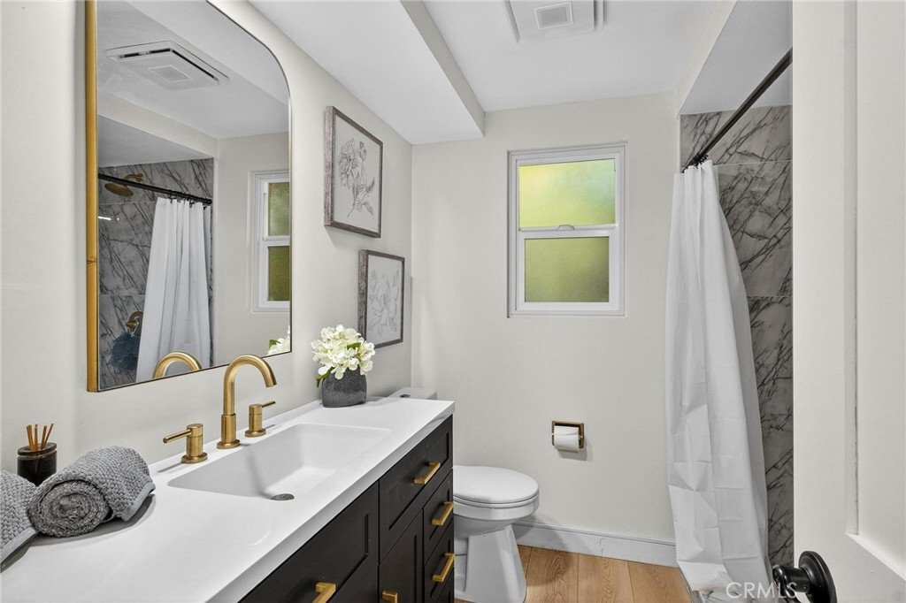 Remodeled and move-in ready, this 2-bedroom, 2-bathroom condo in the gated Merit Manor community offers style, comfort, and convenience in one of Gardena’s most accessible locations. Interior upgrades include engineered hardwood flooring, fresh paint, new interior doors, and a fully renovated kitchen with two-tone cabinetry, quartz countertops, and stainless steel appliances.